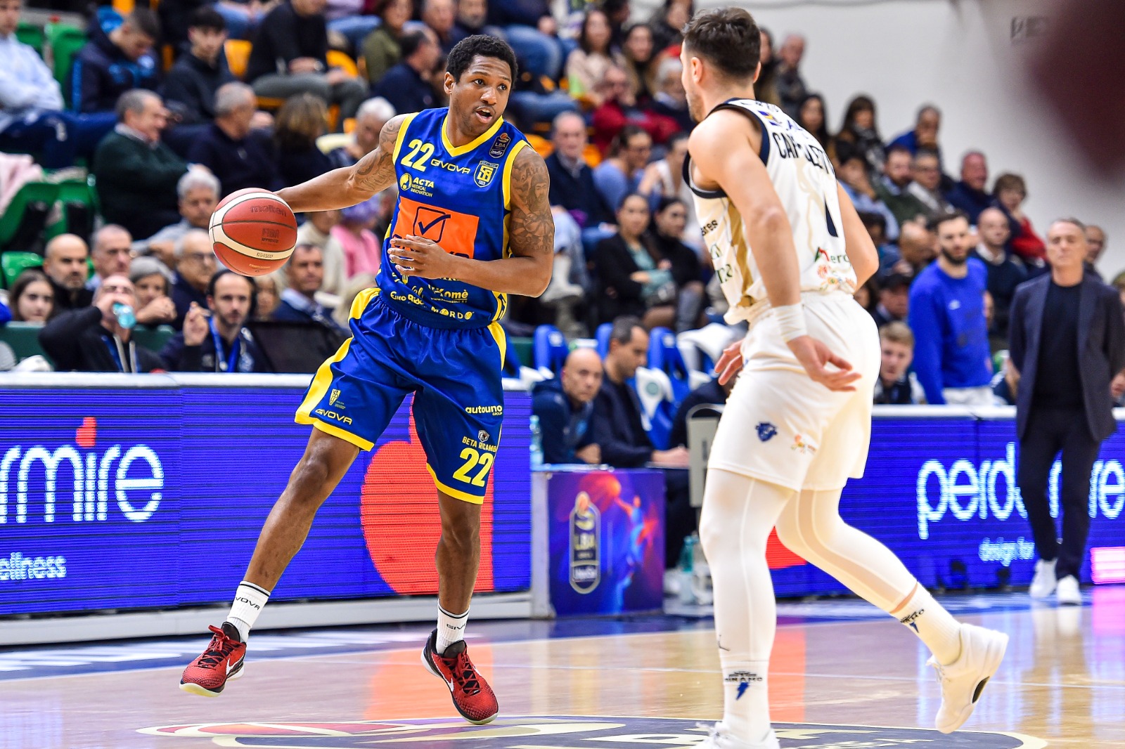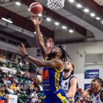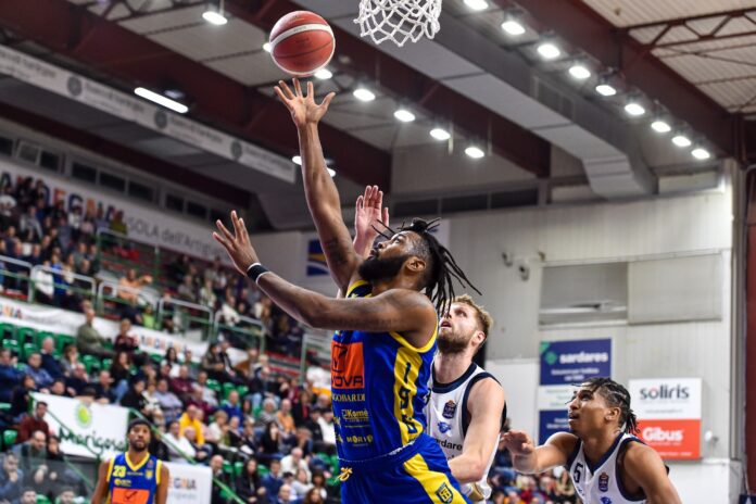 Stessi ritmi e medesima intensità anche in avvio di secondo quarto, in cui ad un timido ritorno dei locali (18-22 al 12’) fa da contraltare la reazione ospite, che vale la doppia cifra di vantaggio al 14’ (20-30), grazie alle triple di Strelnieks e Logan. Il Banco di Sardegna aumenta l’intensità difensiva e, mettendo in campo maggiore fisicità, ritrova anche la via del canestro con più frequenza, annullando il divario con un parziale di 10-0 (30-30 al 18’). Negli ultimi minuti, i quintetti si fronteggiano a viso aperto ed in maniera equilibrata, raggiungendo gli spogliatoi sul 35-33 in favore degli isolani.
