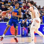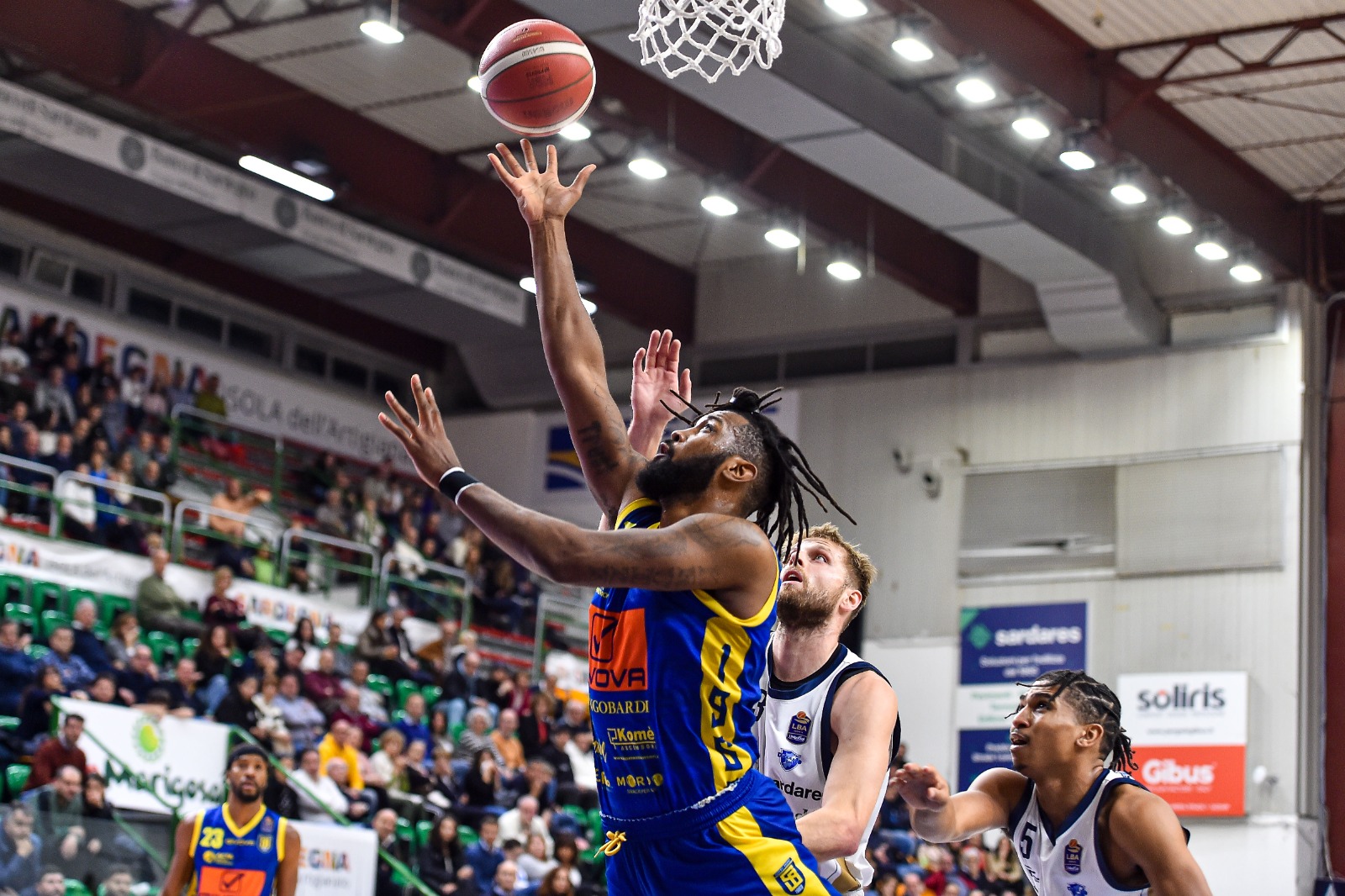 Comincia forte e con intensità la Givova l’ultima frazione, portandosi avanti 56-64 al 32’ (bene Nunge). Segue l’ennesimo contro-parziale sassarese di 16-0 (bene Gentile S.), che, in maniera perentoria e decisa, mettendo intensità, ritmo e fisicità, ribalta di nuovo il risultato della contesa (72-64 al 37’). Le triple di Rossato e Rivers riaccendono la speranza gialloblù (72-70 al 39’), ma la successiva tripla di Kruslin assopisce ogni velleità, anche se Pinkins, a 9’’ dalla sirena, prova a rianimarla (75-73). Gombault realizza entrambi i liberi quando mancano 6’’ (77-73) e nell’azione successiva Strelnieks va a segno dalla lunga distanza (77-76 a 2’’). Fallo su Tyree, che dalla linea della carità non sbaglia e regala il successo ai suoi con il risultato di 79-76.
