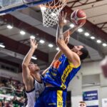 Dopo un avvio di ripresa col freno a mano tirato, la sfida inizia a riprendere vigore con i centri dalla lunga di Charalampopoulos che valgono il 42-38 al 23’. Ci pensa Gentile A., ottimamente coadiuvato da Nunge, a fare la voce grossa. Entrambi, con l’aiuto di Rossato e Strelnieks, in meno di un amen riportano i viaggianti in doppia cifra di vantaggio (42-52 al 27’, con un parziale di 0-14). La risposta dei locali non si fa attendere: Gentile S. e Kruslin sono i principali protagonisti del contro-parziale di 12-1 con cui i biancoazzurri si riportano addirittura in vantaggio (54-53) ad un giro di lancette dalla terza sirena, che arriva invece sul 54 pari.