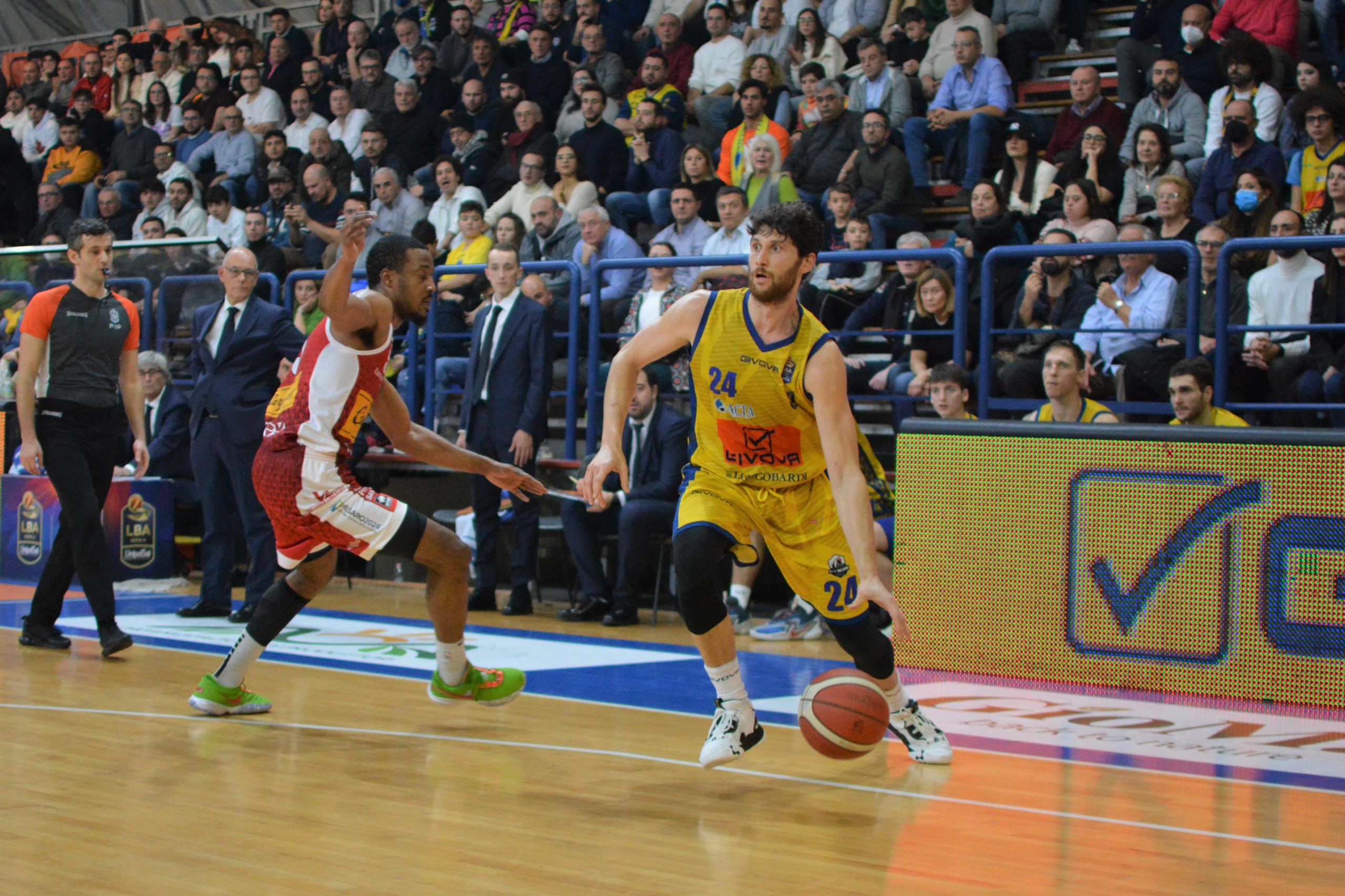 In avvio di terza frazione, complice un fallo antisportivo fischiato a Imbrò, i marchigiani, trascinati da Gudmundsson e Visconti, si ritrovano avanti 55-65 al 32’ (parziale di 2-13). Coach Caja striglia i suoi. Okoye ha un sussulto d’orgoglio e realizza due triple di fila (61-67 al 34’). Ma è un fuoco di paglia, perché gli uomini di Repesa (bene Charalampopoulos) macinano gioco e punti, ampliando le distanze (61-75 al 36’). I gialloblù escono praticamente di scena, con gli ospiti che dilagano (61-80 al 38’) e si impongono 69-81.