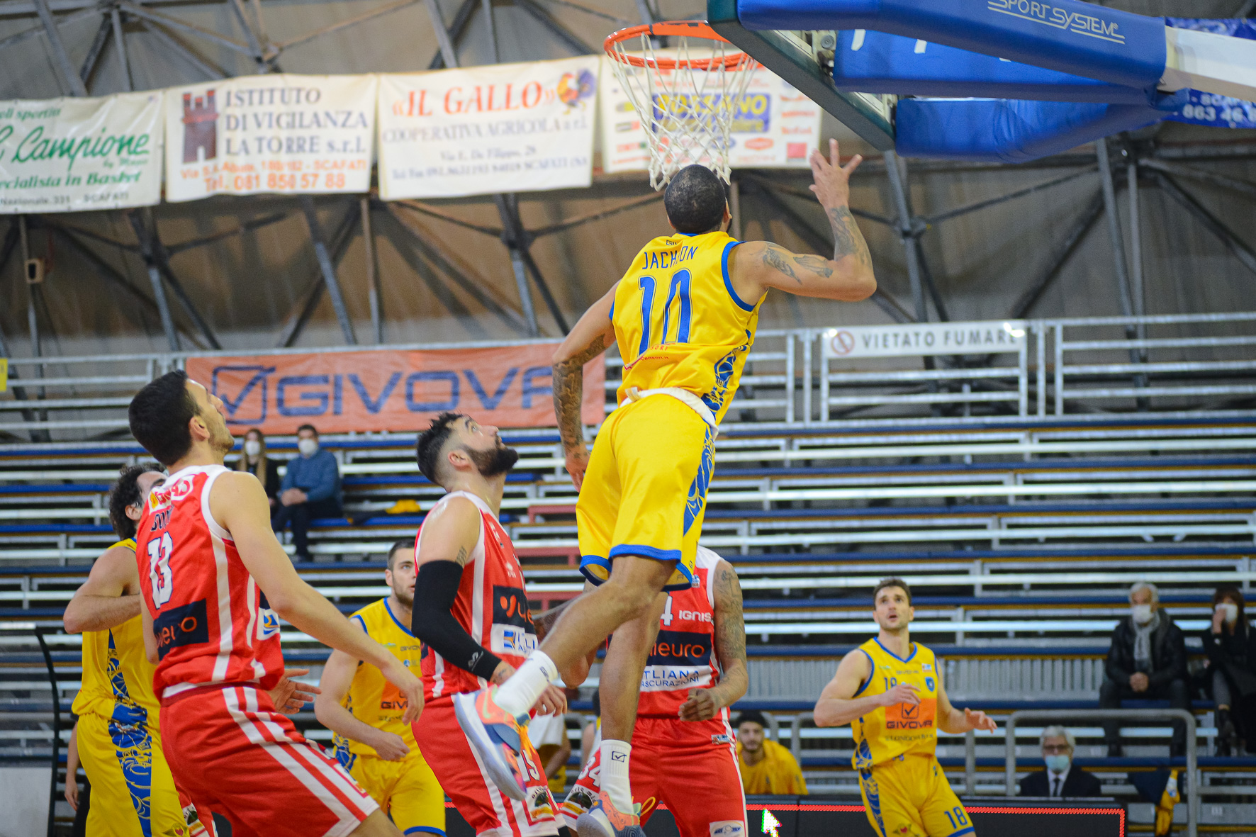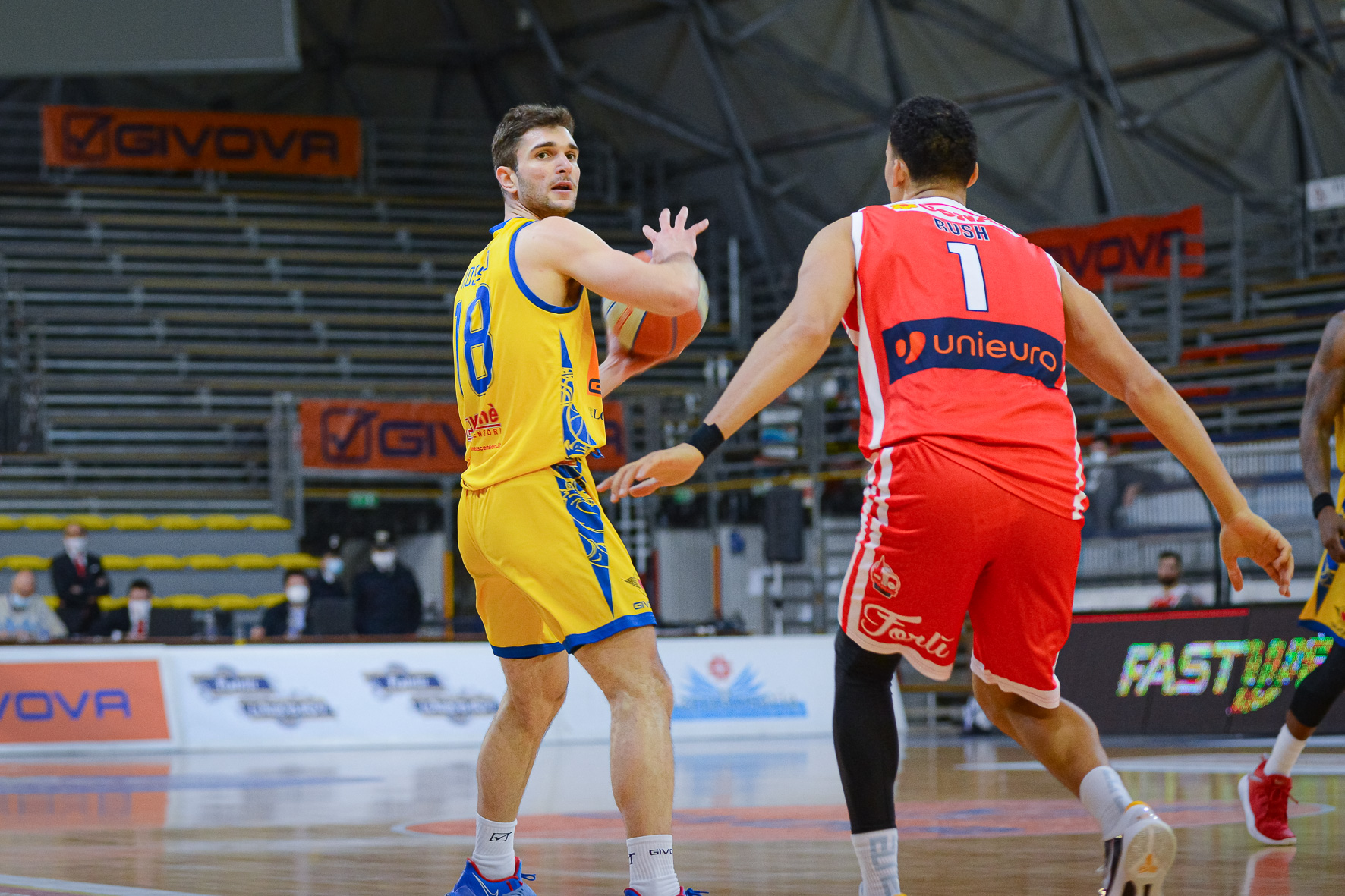 I romagnoli sono un osso duro, non si arrendono e provano ancora a rientrare in partita (64-49 al 33’). La risposta dei locali (bene Rossato) non si lascia attendere (74-49 al 35’). La solidità scafatese è tale e tanta che, col trascorrere dei minuti, l’avversario inizia a mollare la presa e a perdere vigore agonistico. Gli ultimi minuti, infatti, non regalano particolari emozioni, tranne l’espulsione di Jackson per doppio fallo tecnico. La sirena conclusiva arriva quando il tabellone elettronico segna 79 Givova Scafati, 60 Unieuro Forlì.