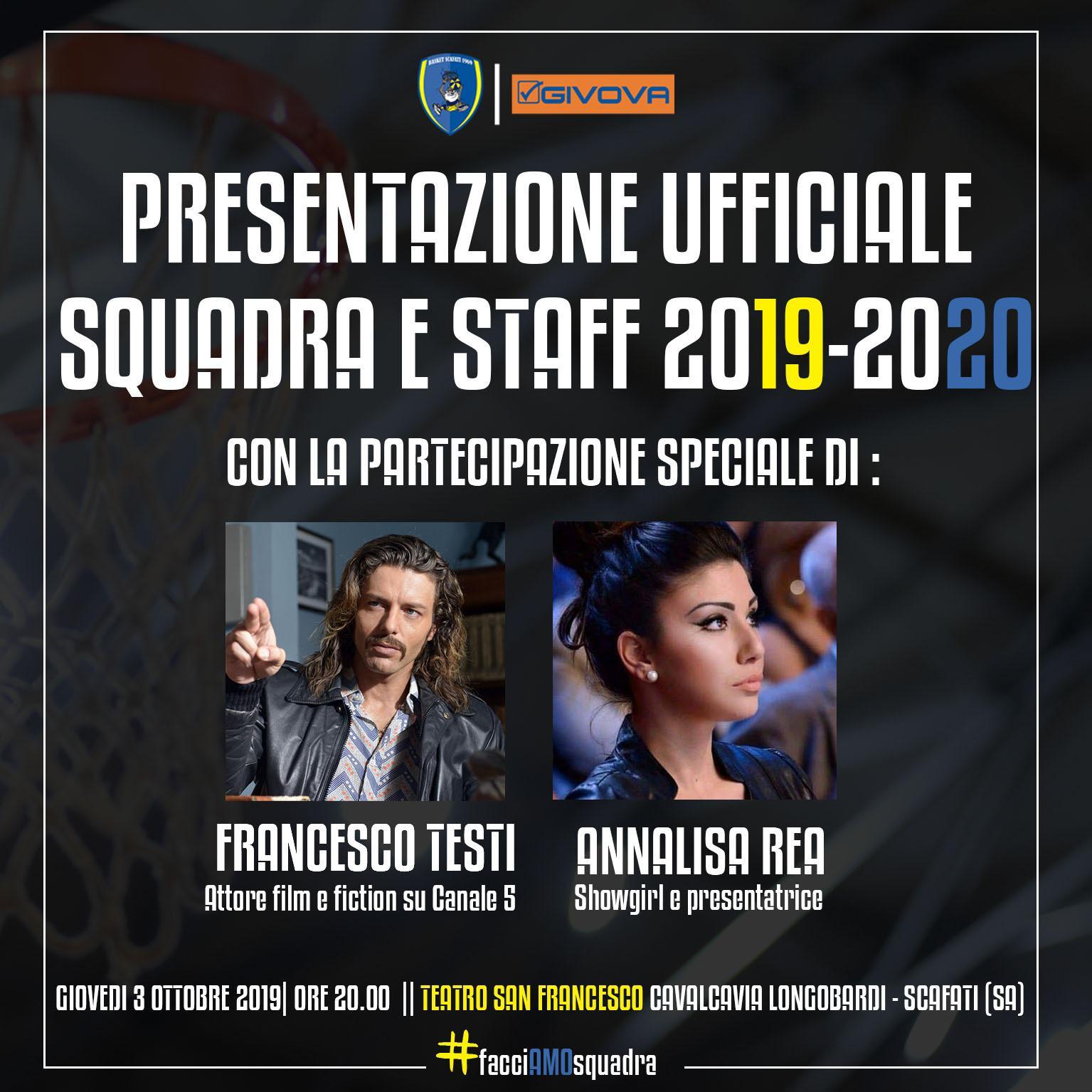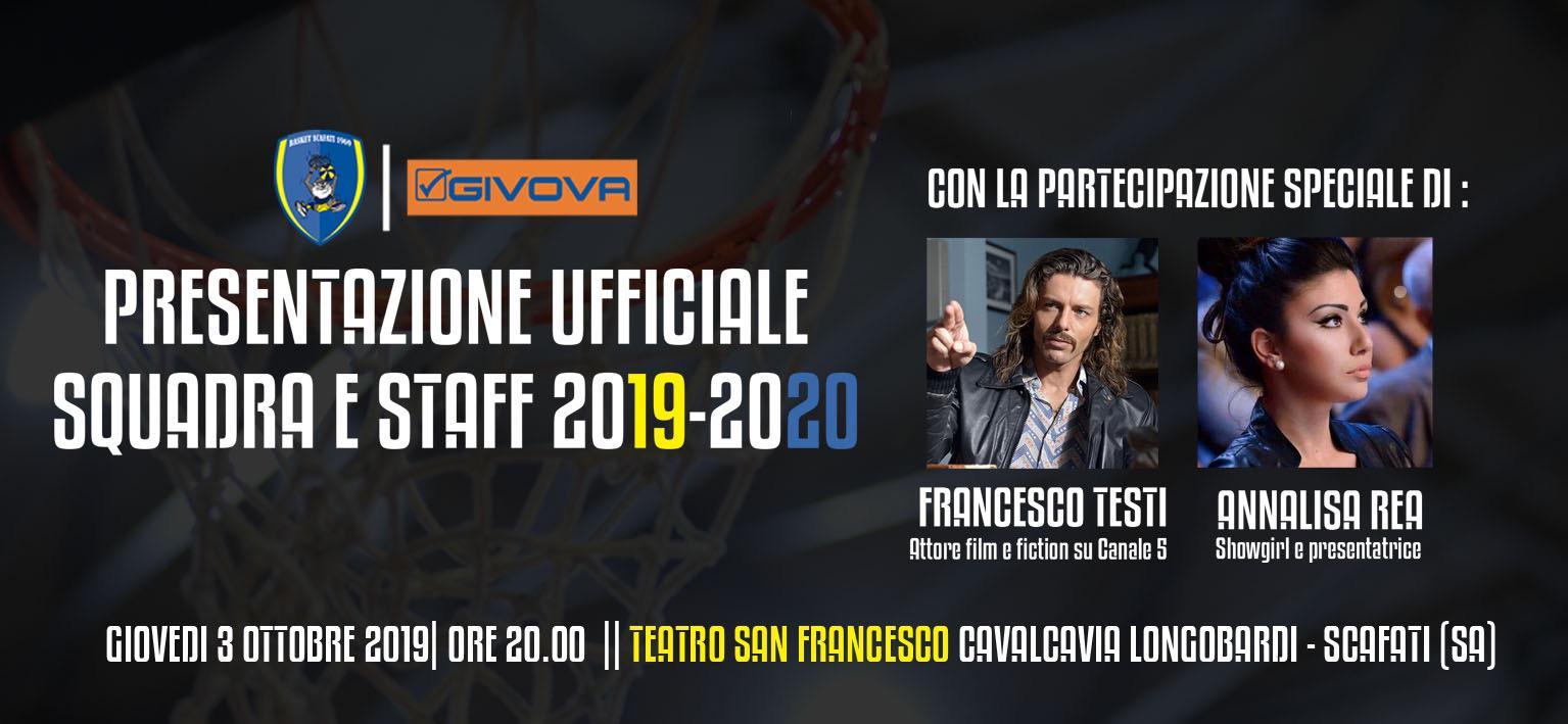 Giovedì 03 ottobre p. v., alle ore 20:00, presso il teatro della Parrocchia San Francesco di Paola di Scafati (Sa), il team e lo staff 2019/2020 della Givova Scafati saranno ufficialmente presentati alla stampa e ai tifosi.