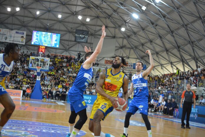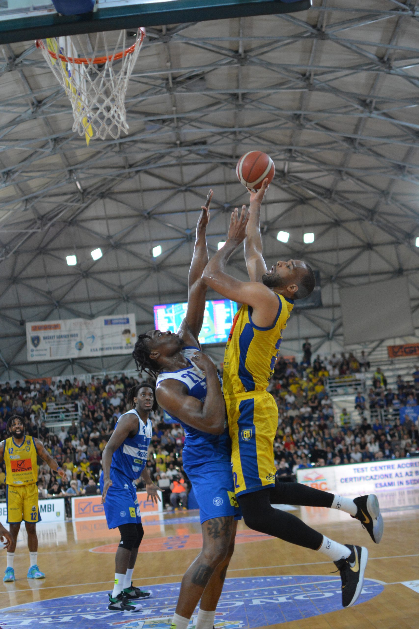 Le giocate di Odiase e Nikolic, in avvio di ripresa, portano subito avanti gli ospiti 51-55 al 21’, 53-58 al 22’ e 56-61 al 24’. I canestri di Hannah, in questo frangente in cui i ritmi sono decisamente più blandi ed il gioco meno avvincente, servono solo a limitare i danni. A metà frazione, sul 61-63, si fa male Stone ad una caviglia ed è costretto ad uscire anzitempo dal parquet. Non è un buon momento per i gialloblù, che smarriscono la lucidità e la via del canestro, facendosi surclassare da Caupain, Petrucelli e soci, bravi a trovare la doppia cifra di vantaggio al 28’ (63-73), ampliata nei minuti che separano i quintetti dal suono della terza sirena (65-82).