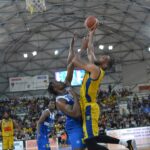 La contesa prosegue all’insegna dello spettacolo, con i padroni di casa, incitati dal proprio pubblico, a portarsi 36-29 al 13’, costringendo coach Magro al time-out. Gli ospiti, trascinati dall’ex Cournooh e da Burns, non si lasciano sopraffare, giocano con grinta e determinazione, tirano con percentuali elevatissime dalla lunga distanza e così restano aggrappati all’avversario (38-37 al 14’; 43-42 al 16’). La stanchezza inizia però a prendere il sopravvento per via del caldo e dei ritmi elevati; ne approfittano i viaggianti per realizzare, con Caupain sugli scudi, i canestri del ritrovato vantaggio 46-48 al 18’. All’intervallo, il punteggio vede però i locali avanti di misura 51-50.