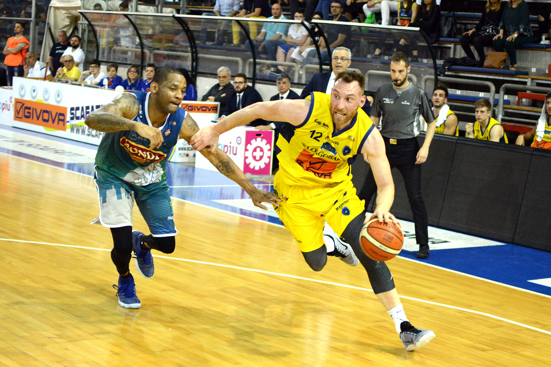 Sfruttando il vantaggio del fattore campo, la Givova Scafati fa sua gara uno del primo turno playoff, superando 73-70 la Bondi Ferrara, avversario degli ottavi di finale. Come nelle aspettative della vigilia, non è stato semplice per gli uomini in casacca gialloblù avere la meglio degli avversari biancoazzurri, in una partita ad altissima tensione, che ha visto prevalere la squadra più cinica e lucida nei momenti decisivi. Nervosismo e fisicità hanno prevalso talvolta sugli aspetti più strettamente tecnici e tattici, regalando al popolo del PalaMangano una partita emozionate ed avvincente.