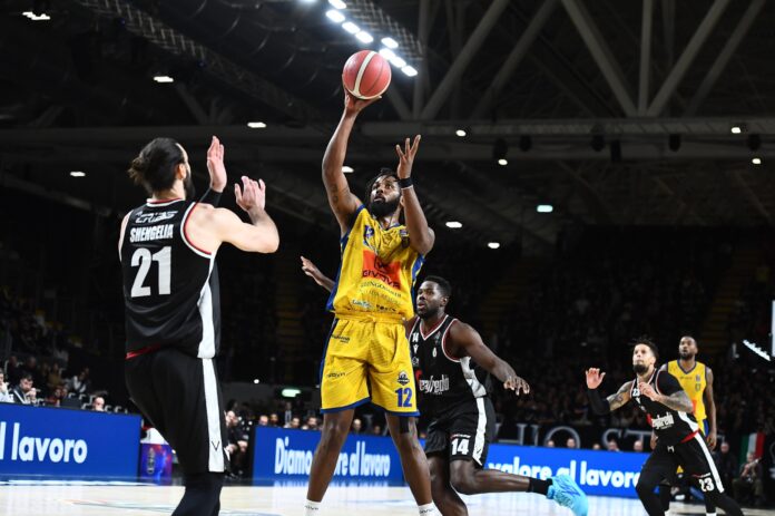 Senza l’infortunato Butjankovs, ma con in campo il neo arrivato Okoye, capitan Rossato e compagni hanno tirato con superiori percentuali di realizzazione, hanno recuperato più rimbalzi e possessi e fatto circolare la palla in maniera esemplare, infliggendo una dura lezione alla blasonata formazione bolognese che, per l’occasione, era rientrata nella Virtus Segafredo Arena, dopo l’esilio forzato al PalaDozza. Esordio interno bagnato però da una sconfitta, la prima in campionato dall’inizio della stagione agonistica.