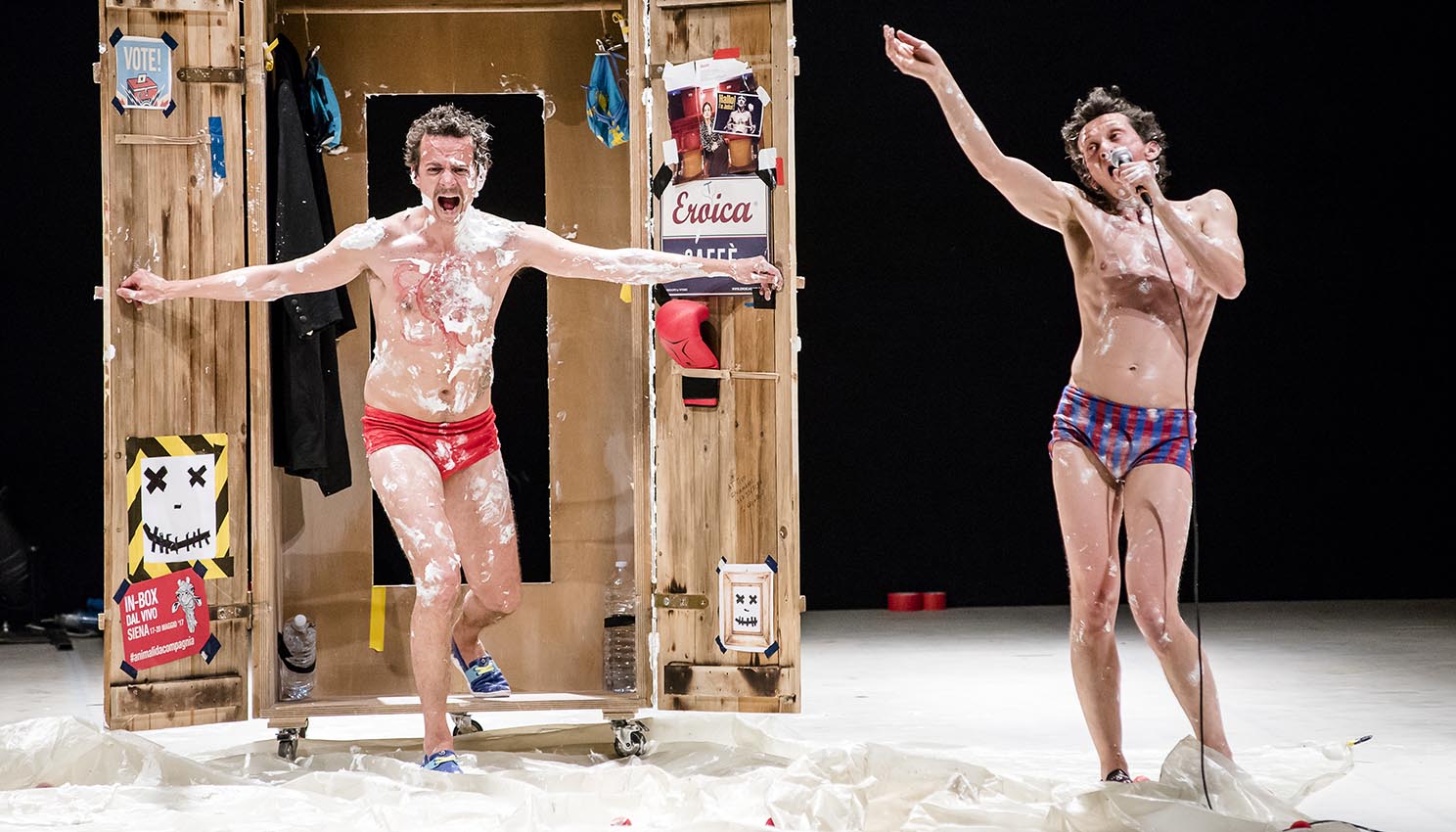 La stagione Mutaverso Teatro, in corso all’Auditorium del Centro Sociale di Salerno, nella zona orientale della città, si conferma punto di riferimento privilegiato per spettacoli pluripremiati. Vincenzo Albano, ideatore e direttore della stagione teatrale, giunta alla sua terza edizione, propone per venerdì 2 febbraio alle ore 21 la compagnia Dimitri – Canessa, in scena con “Hallo! I’m Jacket!” – (il gioco del nulla), di e con Federico Dimitri, Francesco Manenti, regia Elisa Canessa. Lo spettacolo, finalista In Box 2017 e Selezione Visionari Kilowatt Festival 2017, è il riflesso ridicolo e dissacrante di un sentire che riguarda in generale il cosiddetto “mondo contemporaneo”, con la sua rapidità da fast food mediatico, cultura usa e getta e ansia performativa. In “Hallo! I’m Jacket!” tutto viene estremizzato: la performance artistica è metaforicamente tradotta con la prestazione sportiva. Il performer, un atleta che sul palco sventola con convinzione la bandiera bianca della mancanza totale di contenuti. Immersi fino al collo in una realtà che sembra dare sempre più credito a ciò che semplicemente è di tendenza, ci facciamo beffa di questo nostro essere costantemente assillati dall’idea di essere: Produttivi! Seduttivi! Interessanti! Alternativi! Fighi! Indipendentemente da quali siano i contenuti e i saperi. L’amarezza lascia però spazio totale alla buffoneria, alla presa in giro, all’ironia surreale. “Hallo! I’m Jacket!” è la ridicola caricatura di un mondo zoppo, ma che corre trafelato verso il successo. Un successo qualsiasi. Un mondo paradossalmente svuotato di senso e di contenuto. Di amore e di poesia.