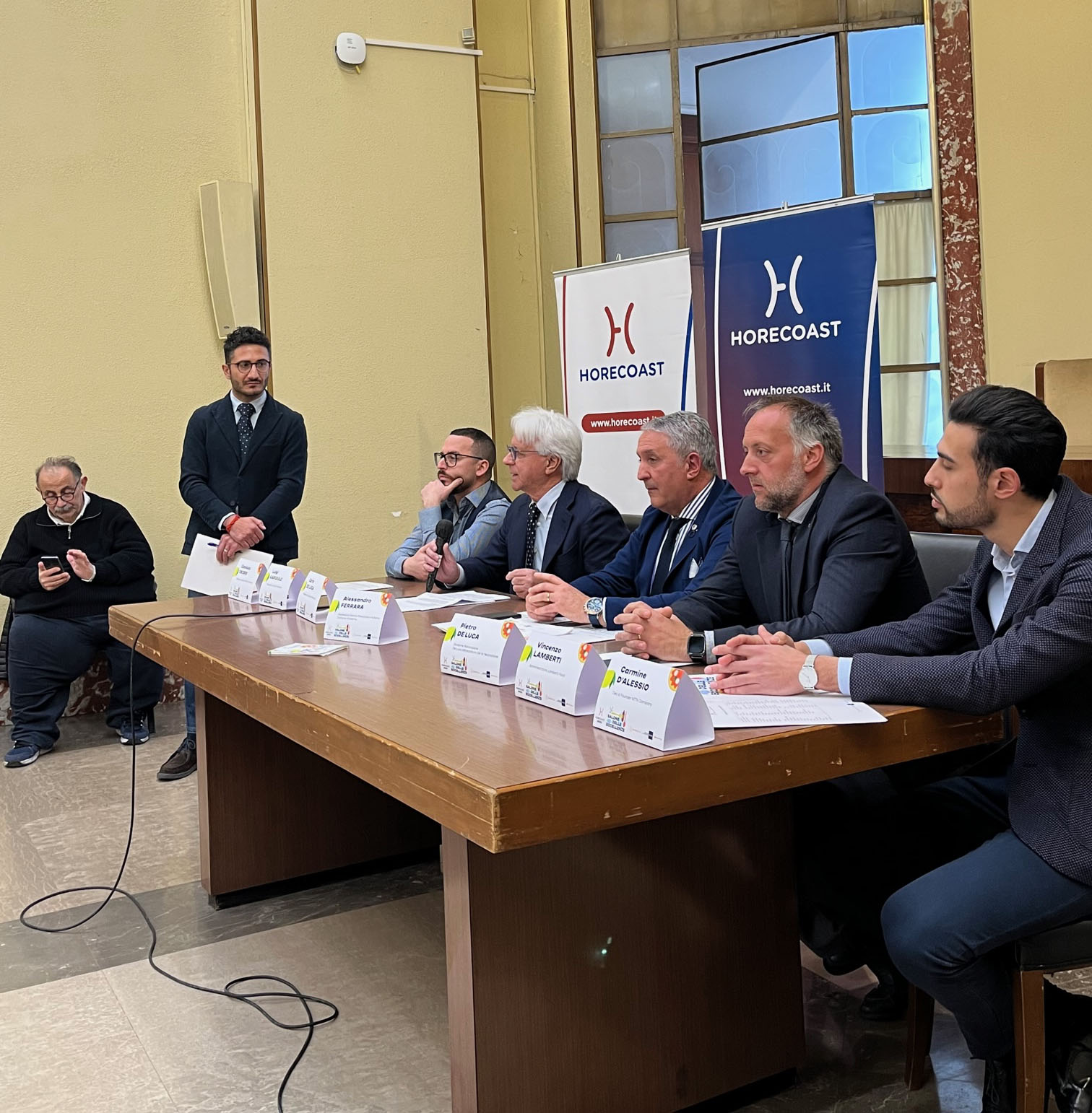 L’iniziativa è stata presentata quest’oggi, mercoledì 5 aprile, presso la Sala del Gonfalone del Comune di Salerno alla presenza di: Alessandro Ferrara, Assessore alle Attività Produttive e al Turismo del Comune di Salerno; Carlo De Luca, Presidente del Consorzio HoReCoast; Pietro De Luca, Responsabile Divisione Ristorazione di De Luca Attrezzature per la ristorazione; Adriano Adinolfi di Lamberti Food; Michele Lanzetta, Project Manager di MTN Company; Peppe Iannicelli, Giornalista; Gianluca Cecere, Delegato regionale della FIPGC Campania; Luigi Gargiulo, Fiduciario dell’A.I.B.E.S. Campania.