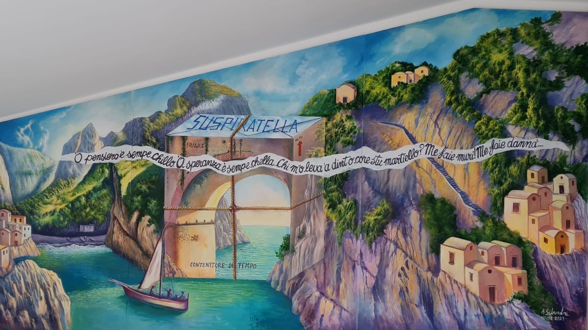 L’opera all’interno della camera è realizzata dall’artista Vito Barra, e ritrae pescatori al fiordo di Furore.