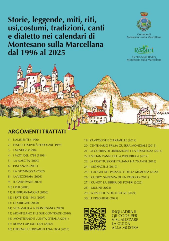 La conferenza stampa di presentazione è in programma alle ore 10.30, presso Palazzo Gerbasio. Subito dopo, si svolgerà il taglio del nastro della mostra, allestita nella Chiesa di Sant’Andrea, adiacente a Palazzo Gerbasio, dove saranno esposte in originale le trenta edizioni dei calendari, dal 1996 al 2025, che negli anni hanno raccontato, attraverso ricerche, immagini e testi, la vita quotidiana, le tradizioni, il dialetto e la memoria collettiva di Montesano sulla Marcellana.