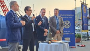 Un gommone di circa sei metri è stato donato nel pomeriggio, al “Circolo Canottieri Irno” di Salerno, nell’ambito del Progetto Diversità Equità e Inclusione (D.E.I.), da quattro Club Rotary salernitani: “Rotary Club Salerno Picentia”, Club capofila, presieduto da Raffaele Brescia Morra; “Rotary Club Salerno”, presieduto da Rino D’Alessio; “Rotary Club Salerno Est”, presieduto da Edoardo Ventura e “Rotary Club Salerno Duomo”, presieduto da Eduardo Grimaldi. Dopo la benedizione del natante officiata da Don Ugo De Rosa, parroco della Chiesa di Santa Margherita e Delegato Diocesano  per il Giubileo,  il Presidente del “Circolo Canottieri Irno”, Giovanni Ricco, ha ricordato che  da anni si è instaurato un rapporto di amicizia e collaborazione tra il “Circolo Canottieri Irno” e i Club Rotary salernitani:”  I rotariani sono sempre stati vicini alle iniziative sportive del nostro sodalizio: hanno spesso sostenuto i nostri progetti  e hanno anche donato in passato un remoergometro,  per gli atleti della nostra squadra dei “ragazzi speciali”, e una canoa di ultima generazione per i nostri atleti  che partecipano a varie gare. Per questa iniziativa devo ringraziare la Delegata al Cerimoniale e ai rapporti con le Istituzioni e le Associazioni, Giovanna Tortorella, che ebbe l’intuizione di dedicare una sezione del nostro Circolo agli “Amici degli Sport del Mare”, di cui fanno parte anche i Club Rotary e altre associazioni, che ha anche lo scopo di avvicinare, soprattutto i giovani, agli sport del mare”. A illustrare le caratteristiche tecniche del gommone che servirà di supporto alle attività sportive del Circolo sono state il Vice Presidente allo Sport del “Circolo Canottieri Irno” Pietro De Luca:” Questo gommone di circa sei metri, con carena narwal, che può affrontare il mare anche in condizioni estreme, sarà utilizzato come supporto per gli allenamenti di canoa, canottaggio, vela; per gli atleti Special Olympics, per i progetti “Sport e Salute “, “Trotula” e “Sport e Terapia”.