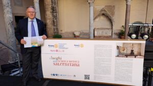 “I Luoghi della Scuola Medica Salernitana” raccontati attraverso le paline con bacheca donate alla città dal “Rotary Club Salerno Duomo”.