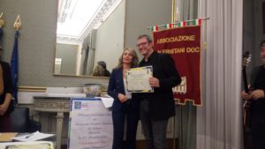 Dopo l’esecuzione dell’Inno di Mameli da parte di quattordici allievi dell’Orchestra da Camera della Scuola Media Monterisi di Salerno, ( Laura Calabrese, Giada Karol Batà, Giorgia De Martino, Lea Marie De Piano, Chiara De Luca, Clelia Giusy Cosentino, Ilaria Siniscalchi, Elena Maria Rosa Palumbo, Alysia Gargano, Roberta D’Andria, Lorenzo Rotolo, Alessandra Nigro, Martina Ferrigno, Nunzio Ritonnaro, Maria Chiara Marzano), diretta dalla musicista Anna Ragone, con la professoressa Rosa Alfinito, che hanno anche eseguito il brano ‘O Sole Mio” sono stati premiati: il valoroso Cavalier Orazio Boccia, Fondatore e Presidente delle “Arti Grafiche Boccia”, assente, per lui ha ritirato il premio il dottor Ciro Savarese ; il dottor Nunziante Coraggio, già presidente ANCE Campania, Vicepresidente di Confindustria Bulgaria, nato alla “Clinica Tortorella”, che vive tra Sofia e Milano:” Ogni tanto torno a Salerno. Questo premio mi inorgoglisce perché è un premio all’appartenenza della comunità salernitana”; il dottor Italo Leo, Medico Sociale e Coordinatore dell’Area Medica della Salernitana che ha dedicato il premio alla squadra della Salernitana e a suo padre Mario:” Che purtroppo non c’è più: era un grandissimo salernitano che mi ha trasmesso la salernitanità”; il giornalista di Telediocesi Alfonso Maria Tartarone; il Maestro Ernesto Radano , noto cantante salernitano, spesso ospite, anche con la figlia Maria, di programmi su RaiUno, semifinalista al “Festival di Sanremo”, Direttore Artistico del “Festival del Mare”; nato in Via Canali, nel centro storico, ha dedicato il premio a tutti i salernitani:” Al popolo salernitano e a quei salernitani che portano la bandiera di Salerno nel mondo”. Radano ha anche deliziato i presenti con la sua interpretazione del brano “Fenesta Vascia” accompagnato alla chitarra dal Maestro Angelo Carpentieri.