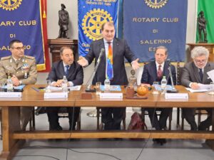 Il Colonnello Nicola Iovino, Comandante del glorioso 19° Reggimento “Cavalleggeri Guide” di Salerno, ha aperto la Caserma ai tanti rotariani che hanno partecipato al convegno:” Ci sentiamo parte di questa comunità” – ha spiegato il Colonnello Iovino – “Con il Rotary abbiamo in comune lo spirito di servizio: il Reggimento Guide nei confronti delle istituzioni; il Rotary nei confronti della società e della comunità”. Iovino ha ricordato che le celesti Guide sono l’ultimo Reggimento di cavalleggeri rimasto in vita nell’Esercito Italiano: ” L’unico armato ancora di sciabola, anche se solo per compiti di rappresentanza” e parlato anche del glorioso Stendardo delle Guide:” Quel drappo dai tre smaglianti colori d’Italia, custode delle tradizioni del Reggimento, che è stato decorato con una Medaglia d’Oro e una d’Argento al Valor dell’Esercito, una Medaglia d’Argento e due di Bronzo al Valor Militare e una Medaglia d’Argento al Valor Civile. Questo Stendardo, durante i combattimenti, veniva portato da soldati portastendardo, su cavalli addestrati che, durante la carica, non dovevano mai cadere a terra. Il cavallo oggi è stato sostituito con il carro armato: con la Blindo Armata Centauro dell’Esercito Italiano; dai blindati Puma 4×4 e 6×6 e dai Veicoli Tattici Leggeri Multiruolo Lince”. Il Colonnello ha ricordato il sacrificio di tanti soldati che hanno donato la loro vita per la Patria e che il Reggimento fa parte della “Brigata Garibaldi” della quale fanno parte anche molte donne soldato. “I Cavalleggeri si addestrano continuamente. Si preparano a qualsiasi tipo di operazione per garantire la pace”. Il Segretario del “Rotary Club Salerno Nord dei Due Principati”, il Past President Vittorio Villari, ha salutato le autorità militari e rotariane presenti tra le quali il Colonnello Filippo Melchiorre, Comandante Provinciale dei Carabinieri di Salerno; il Generale Oriol De Luca, Comandante Provinciale della Guardia di Finanza di Salerno; il Past Governor Marcello Fasano, il Formatore Distrettuale Michelangelo Riemma, il Formatore d’Area Gaetano Pastore, gli Assistenti del Governatore: Tony Ardito, Dino Bruno e Ciro Senatore. A nome di tutti i presidenti rotariani è intervenuto l’avvocato Camillo De Felice, presidente del “Rotary Club Salerno Est” che ha ricordato il ruolo del Rotary sul territorio e che il Rotary è presente all’Assemblea delle Nazioni Unite fin dalla sua fondazione:” Il Rotary detiene un seggio permanente nell’Assemblea della Nazioni Unite. Il Rotary si dedica alla promozione della pace e si impegna per affrontare le cause alla base dei conflitti nelle comunità di tutto il mondo per perseguire un futuro di pace, giustizia e libertà”. Il professor Antonino Sessa, che ha moderato l’incontro, ha letto i curriculum dei relatori a cominciare dal Generale Salvatore Farina, già Capo di Stato Maggiore dell’Esercito Italiano, che ha parlato degli aspetti strategici dei conflitti armati e spiegato qual è stato il ruolo delle Forze Armate dalla Seconda Guerra Mondiale ad oggi:” L’Italia è impegnata attivamente nel supporto della sicurezza e della pace in diverse regioni del mondo. L’Esercito Italiano ha fatto scuola come garanzia di Pace, di imparzialità e soluzione di conflitti: siamo impegnati in Kosovo, in Libano, in Iraq, siamo anche sul Mar Rosso per tutelare le navi commerciali italiane che sono suolo patrio e vanno protette da eventuali attacchi. Cerchiamo di trovare una strada che possa far cessare i conflitti attuali e per evitare che ce ne siano in futuro. Bisogna trovare dei punti di convergenza tra le parti in conflitto: non solo tra Russia e Ucraina, tra Israele e Palestina, ma anche tra tanti altri Paesi che in questo momento sono protagonisti di una Terza Guerra Mondiale a pezzi, com’è stata definita dal Santo Padre, che deve essere contenuta e spenta”. Il professor Cosimo Risi, già Ambasciatore italiano a Berna; Docente di Relazioni Internazionali all’Università di Napoli, alla Luiss di Roma e all’Università di Salerno, giornalista e Past President del “Rotary Club Salerno”, ha spiegato che l’attacco del 7 ottobre del 2023 è stato un atto terroristico:” I miliziani di Hamas hanno forato la barriera che separa Gaza da Israele e sterminato circa 1.200 persone e preso degli ostaggi che sono stati nascosti nei tunnel scavati negli anni sotto la superficie di Gaza. Israele ha dato luogo ad una controffensiva che ha provocato la morte di quasi 25mila palestinesi e più di 60 mila feriti: un bilancio enorme che purtroppo è destinato a crescere fino a quando non saranno scovati e uccisi tutti i capi dell’organizzazione politica palestinese denominata Ḥamās”. Il professor Risi ha parlato anche della situazione in Ucraina:” C’è uno stallo delle ostilità: le grandi offensive sono in pausa. C’è l’attesa da parte di Putin che venga eletto Trump alla Casa Bianca, alle prossime elezioni di novembre. Trump ha già promesso che a partire dal secondo giorno dalla sua elezione risolverà il problema, probabilmente con un negoziato di pace che preveda la sovranità della Russia sulla Crimea e la cessione di un pezzo di territorio ucraino”. Il professor Francesco Buonomenna, Associato di Diritto dell’Unione Europea all’Università di Salerno, ha spiegato il ruolo del diritto, della politica, intesa come relazioni tra Stati, e delle organizzazioni internazionali nei conflitti di guerra:” I conflitti armati hanno fondamenti e ragioni diverse. Quello tra Russia e Ucraina è un conflitto che poteva essere evitato: con uno sforzo più ampio della diplomazia si poteva trovare una soluzione diversa, come quella di non prospettare l’entrata dell’Ucraina nella NATO, ma nell’Unione Europea; questo avrebbe garantito comunque l’Ucraina che sarebbe stata protetta. Diversamente il conflitto iniziato il 7 ottobre in Israele ha radici molto più profonde e di di