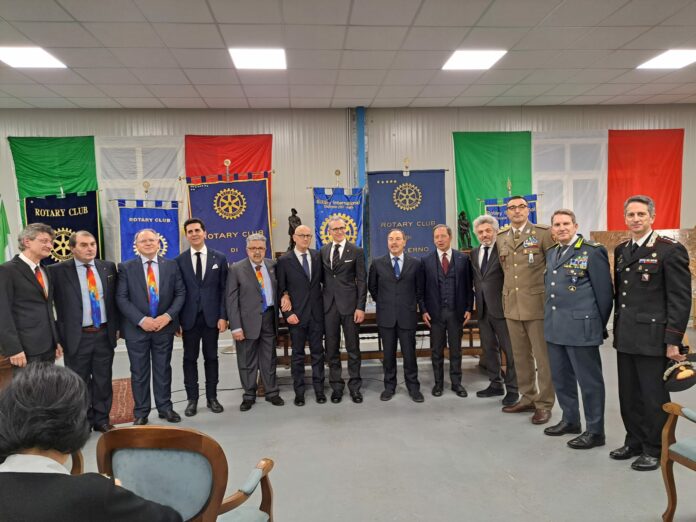 “Alla vittoria ed all’onor son guida!” è il motto reggimentale che anima gli uomini e le donne del prestigioso e antico Reggimento “Cavalleggeri Guide” (19°) che, uniti intorno al glorioso Stendardo, servono fedelmente la nostra Patria e rappresentano un patrimonio della nostra nazione. Le fiamme bianche e celesti, dal 23 febbraio del 1860, anno della costituzione, a Pinerolo, del Reggimento Guide, sono state protagoniste e testimoni fedeli di numerosi avvenimenti la cui importanza ha modificato l’assetto della nostra Nazione, dell’Europa e del Mondo. I soldati delle Guide, sull’attenti, con sguardo fiero, con il tradizionale saluto militare che consiste nel portare rapidamente e rigidamente alla fronte la mano destra, hanno accolto i soci dei Club Rotary e Rotaract salernitani nella Caserma D’Avossa di Via Pietro Del Pezzo, in occasione del convegno “I conflitti armati: profili strategici, diplomatici e giuridici” organizzato dal “Rotary Club Salerno Nord dei Due Principati”, presieduto dal professor Antonino Sessa, con il comando del “Reggimento Guide” , nella persona del Colonnello Nicola Iovino, in interclub con i Club Rotary e Rotaract salernitani presieduti da Umberto Maria Cioffi (Rotary Salerno), Camillo De Felice (Rotary Salerno Est), Vincenzo Capuano (Rotary Salerno Picentia), Sabato Cuozzo (Rotary Salerno Duomo), Ugo Sorrentino (Rotary Cava Dè Tirreni), Natalia Granito (Rotaract Salerno), Carmen Tisci(Rotaract Salerno Est), Sergio Rosa (Rotaract Duomo), Giusy Palmieri (Rotaract Campus, Salerno Nord dei Due Principati).