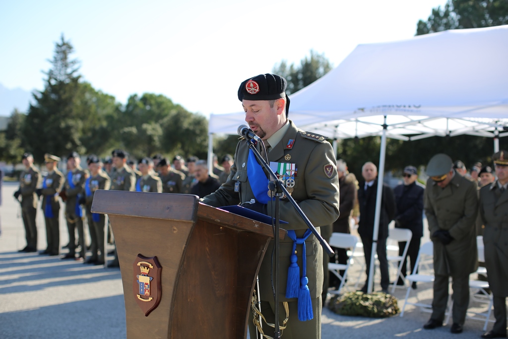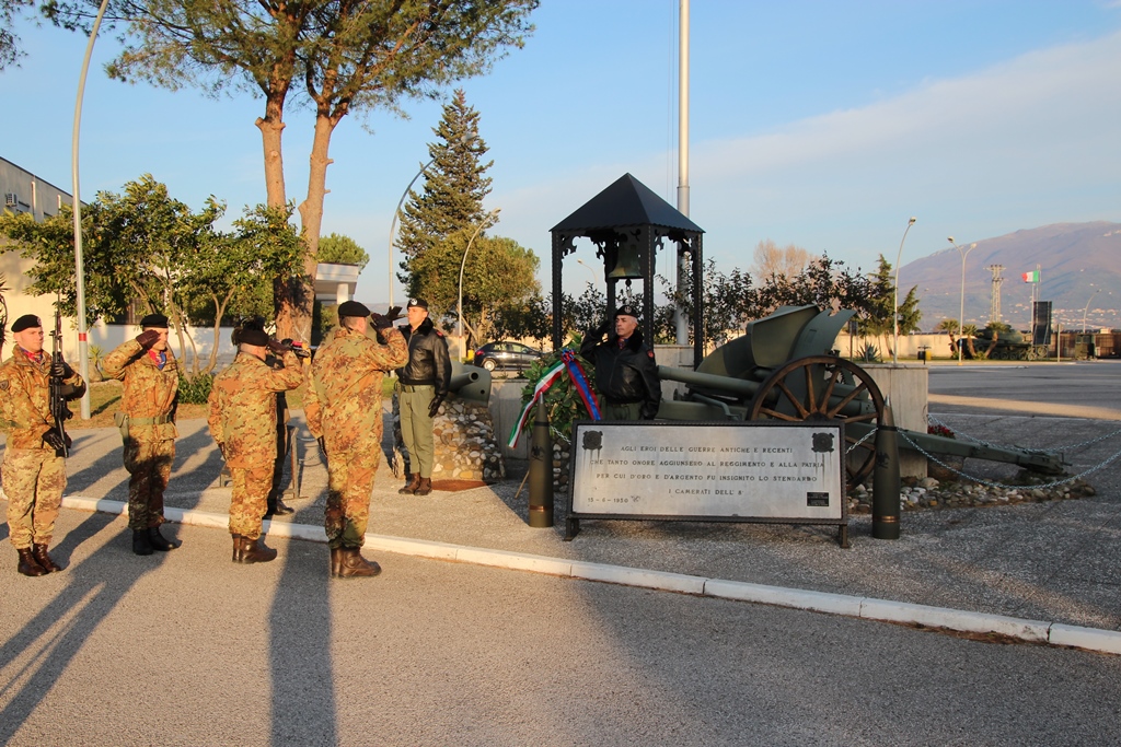 La cerimonia è stata preceduta dalla deposizione di una corona di alloro al “monumento ai caduti” da parte del 40° Comandante di reggimento, Colonnello Carmine VINCI ed è proseguita con lo schieramento dei Reparti, la resa degli onori allo Stendardo da combattimento, la lettura dei fatti d’Arme e la lettura della motivazione della Medaglia d’Oro al Valor Militare.