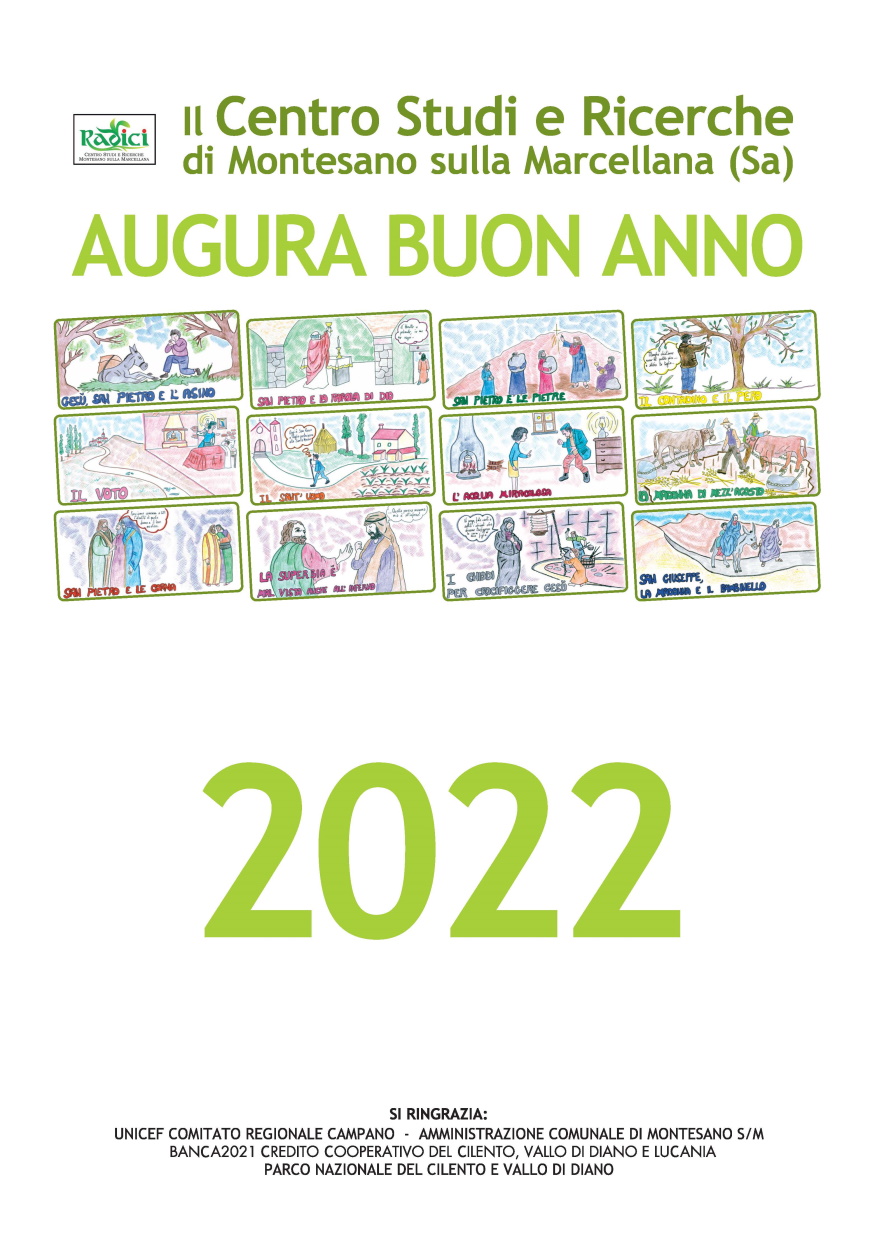 Il Calendario 2022 è stato realizzato grazie al contributo del Comune di Montesano SM e della Banca 2021 – Credito Cooperativo del Cilento, Vallo di Diano e Lucania. Oltre a quello del Comune di Montesano gode dell’Alto Patronato dell’Unicef (Comitato Regionale Campano) e del Parco Nazionale del Cilento, Vallo di Diano ed Alburni. Come sempre sarà distribuito gratuitamente alle Scuole e alle Famiglie di Montesano, alle Istituzioni locali e provinciali, alle Associazioni del territorio e a tutti coloro che ne faranno richiesta.