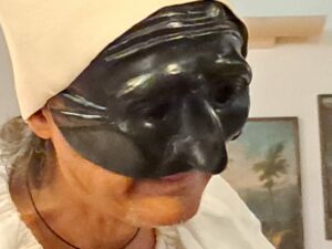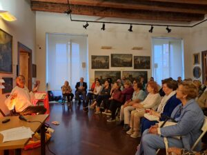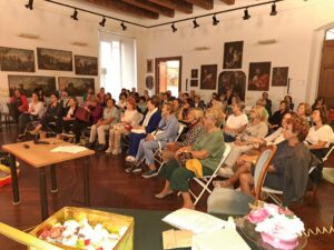 Tanti i brani classici napoletani interpretati dal Maestro Napolitano: “La Canzone del Pescatore”, una villanella che Roberto De Simone ha inserito nella sua famosa “Cantata dei Pastori” e che richiama il mito di Colapesce, tra le più famose leggende siciliane e di tutto il Sud. “Colapesce pare fosse così tanto abile sott’acqua da potervi resistere anche settimane ed addirittura mesi. Un bassorilievo rinvenuto a Napoli, rappresentante Orione rivestito da una sorta di pelle con un coltello in mano associa il mito di Colapesce a quello di Orione da cui prende il nome la famosa costellazione” ha spiegato Napolitano che ha cantato anche due canzoni di Salvatore Di Giacomo: “Luna nova” e “’A Sirena”. Napolitano ha raccontato anche il mito di Demetra che assaggiò il frutto del melograno offertole dallo sposo:” Per questo gesto venne legata per sempre all’aldilà”. Napolitano ha raccontato anche la leggenda dell’uovo della sirena Parthenope nascosto da Virgilio nei sotterranei di Castel dell’Ovo secondo la quale, se l’uovo fosse stato ritrovato o se si fosse rotto, tutto il castello sarebbe sprofondato in mare ed una serie di sventure avrebbe colpito la città di Napoli. Napolitano ha cantato la settecentesca “La Palummella” (zompa e vola) di autore ignoto, e ricordato anche la fontana della Spinacorona, detta “delle zizze”, con una sirena in marmo bianco   che è in procinto di spegnere le fiamme del vulcano Vesuvio con l’acqua che le sgorga dai seni. Napolitano ha cantato anche una sua canzone dedicata a Napoli e una poesia da lui scritta che ha interpretato indossando la maschera di Pulcinella:” È l’anima di Napoli”. È intervenuto il professor Francesco D’Episcopo già docente di Letteratura italiana, Critica Letteraria e Letteratura Comparata all’Università “Federico II” di Napoli, che ha raccontato di come abbia parlato nelle sue lezioni all’Università di tutti gli scrittori napoletani e sottolineato la grande passione dei napoletani per la sirena Partenope:” I napoletani quando pensano a questa sirena s’incantano”. (Foto di Luciana Cardone).