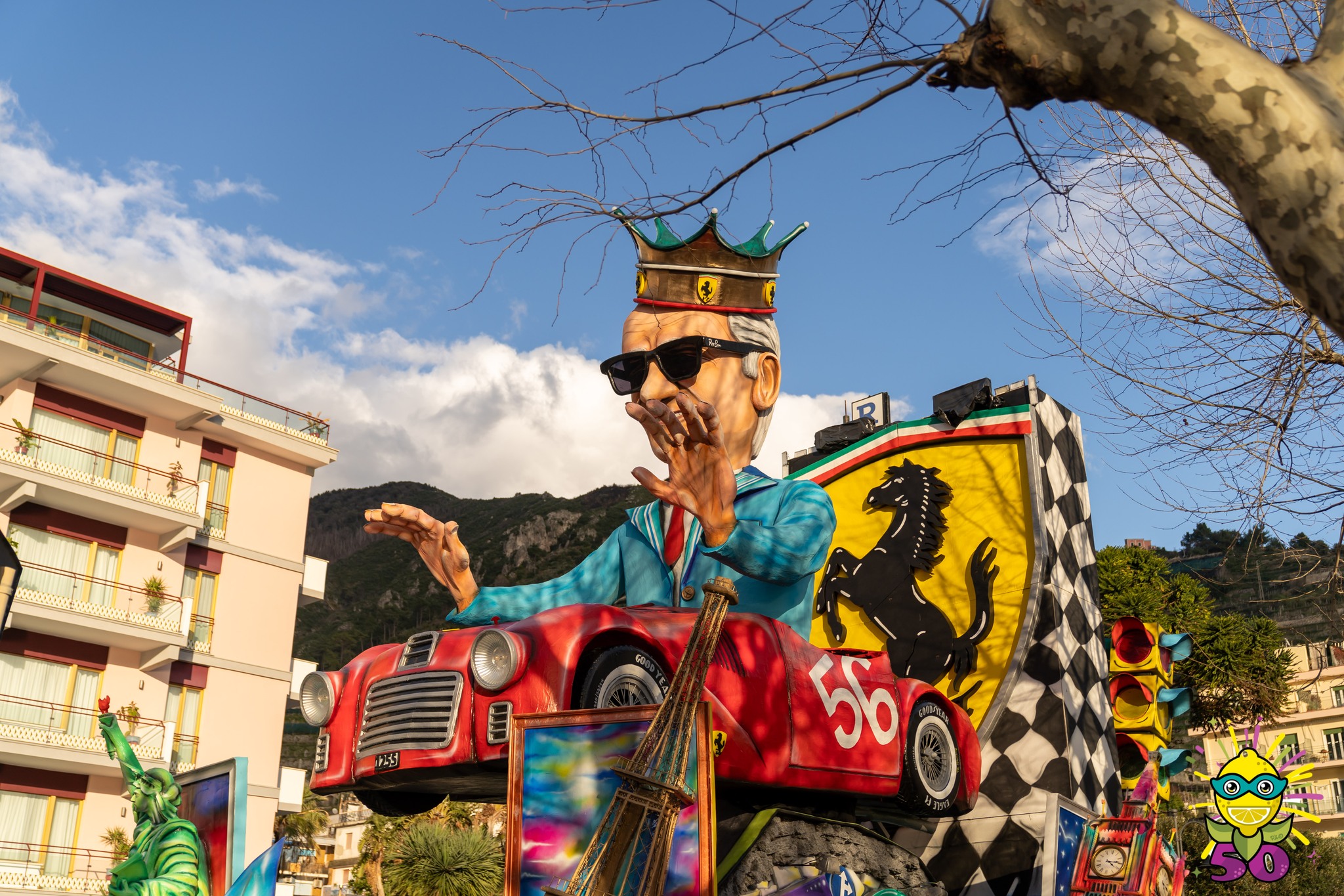 Il carro dedicato al mito di Enzo Ferrari e delle “rosse” vince il Gran Carnevale di Maiori. Ad aggiudicarsi la 50esima edizione della manifestazione sono stati i componenti del gruppo “Gli invisibili” con il carro allegorico «Ferrari nel mondo» che aveva come figura principale proprio quel “Drake” che è stato l’artefice del grande successo della casa di Maranello. La giuria popolare ha dunque premiato l’idea progettuale ispirata al più celebre dei marchi Made in Italy con cui il gruppo vincitore (il carro dedicato alla Ferrari si è aggiudicato anche il premio social) ha inteso raccontare attraverso la cartapesta una delle eccellenze del Belpaese, in linea con l’anno delle radici italiane promosso dal Ministero degli Affari Esteri e della Cooperazione Internazionale. Infatti era proprio questo il filo conduttore della 50esima edizione del Gran Carnevale di Maiori che si è concluso ieri sera presso il porto turistico con la premiazione dei vincitori al termine dell’ultima sfilata dei carri allegorici accompagnata all’imbrunire da un suggestivo spettacolo pirotecnico sul mare (peraltro già apprezzato in occasione della sfilata di martedì grasso) che, in concomitanza del passaggio delle opere in cartapesta ha illuminato di luci e colori l’intero lungomare.