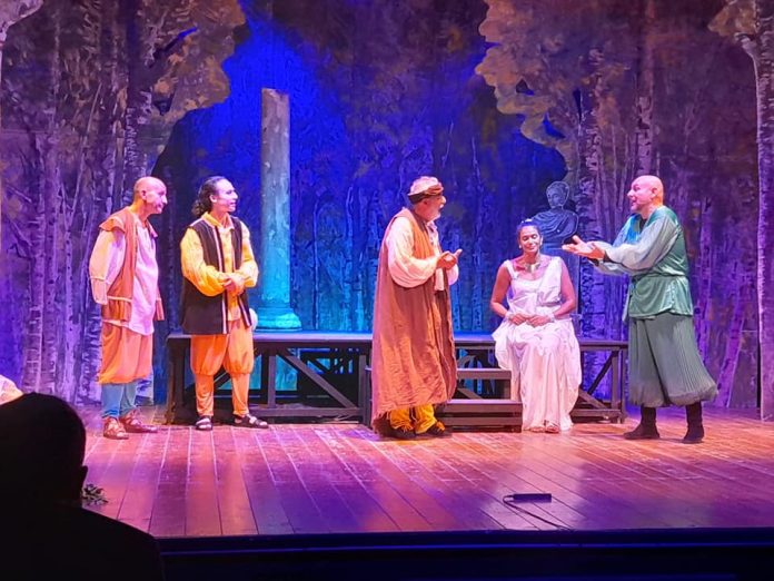 LO SPETTACOLO Cerilo, ricco signore siciliano, è innamorato di Asteria, figlia di Anticlo, principe di Gela. Asteria, interpretata da Denny Mendez, è la più bella donna dell’intera Sicilia, incantevole ma al tempo stesso altera, tanto da giurare: “solo di un Nume io sarò oppure diventerò sacerdotessa”. Il giuramento viene segretamente ascoltato da Cerilo che, pur di non rinunciare ad Asteria si rivolge a Fliace, un direttore di una compagnia di comici girovaghi, portato in scena da Vito Cesaro. I due ordiscono un piano basato sull’antica credenza che narrava che un giorno, Dioniso assieme a satiri e menadi, verrà sulla terra con il suo carro a rapire la figlia del principe di Gela. Sarà Cerilo a travestirsi da Dioniso che, con artifizi e l’aiuto dei comici, appare in occasione del compleanno di Anticlo nel corso del quale rapisce la bella Asteria. Il piano sarà compiuto e, quando Cerilo ed Asteria rimarranno soli, quest’ultima rivelerà che in realtà vuol restare nella sua Sicilia. A quel punto Cerilo getterà la maschera conquistando la donna amata. Il dramma satiresco è riconducibile alla sfera del culto del dio Dioniso, dio dell’estasi, del vino, dell’ebbrezza e della liberazione dei sensi. Il testo originale, una commedia comica dall’omonimo dramma satiresco di Ettore Romagnoli, datato inizio del ‘900, si trasforma, nel riadattamento firmato da Vito Cesaro, in uno spettacolo brillante e scorrevole. I personaggi sono divertenti, fortemente caratterizzati e per certi versi addirittura surreali. Si muovono in una scena sfavillante e colorata. A completare la messinscena, le musiche originali del maestro Roberto Marino. In scena con Danny Mendez e Vito Cesaro ci saranno Massimo Pagano, Claudio Lardo, Christian Salicone e Filippo D’Amato.