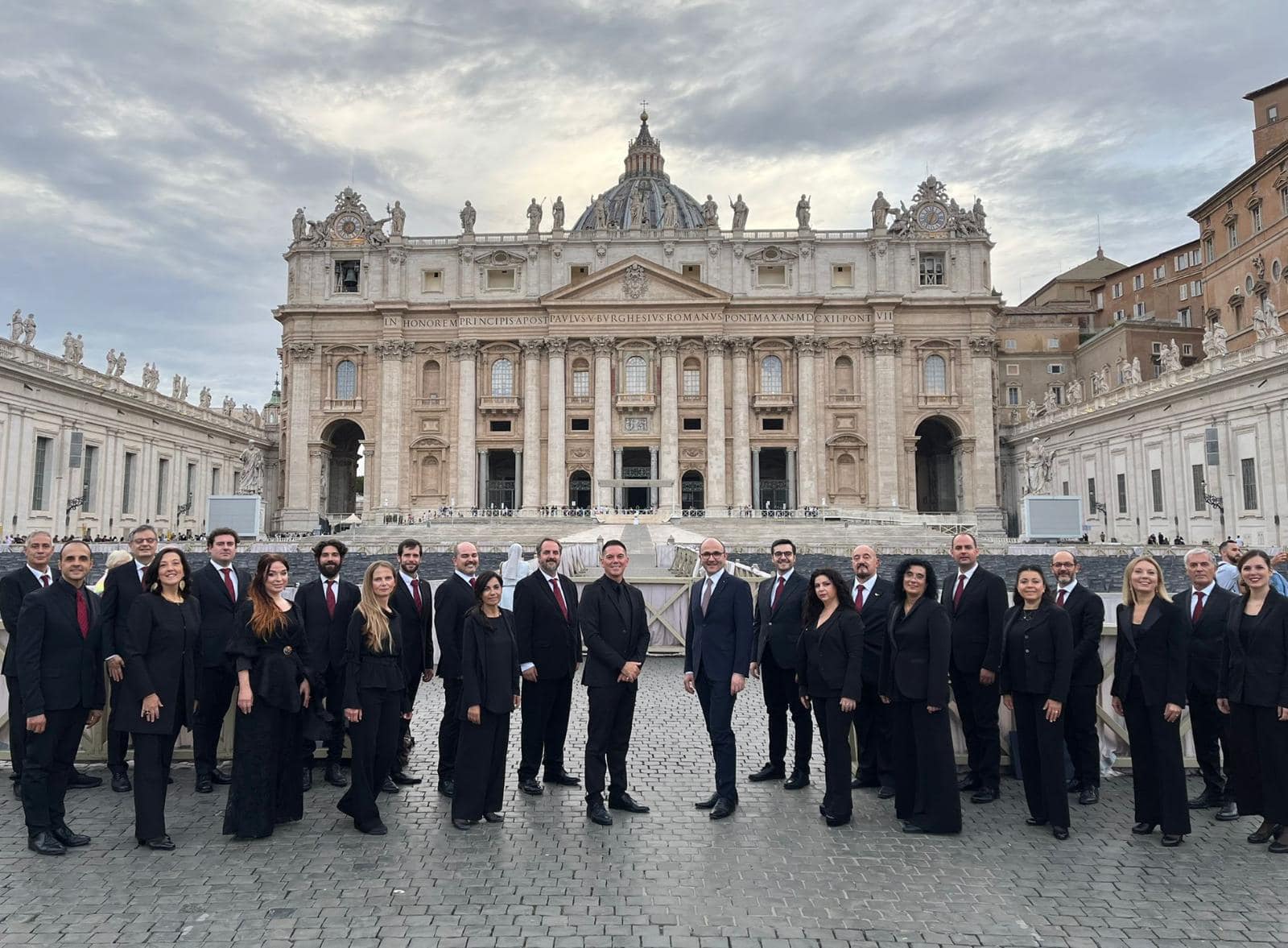 Il testo è declamato dalle quattro voci, soprani, contralti, tenori e bassi, in modo “sfalzato” secondo la tecnica nota col nome di contrappunto tipica della polifonia classica. Il primo brano di Lorenzo Perosi, sarà l’Ave Maria, originariamente un componimento a due voci pari, semplice nella struttura e tessitura; la varietà di accenti che si sviluppa nel corso del brano, ora a imitazione fra le due voci, ora omoritmicamente, crea un’atmosfera di intima spiritualità. Ci sono dubbi sulla paternità dei testi di Jesu dulcis memoria, pagina rinascimentale, che pare appartenga a San Bernardo de Clairvaux, lo stesso accade con la paternità della musica, che come noto è attribuita al famoso compositore spagnolo Tomás Luis de Victoria, splendido il suo ricco schema armonico, con alcune parti omofoniche e le imitazioni che a volte vengono pronunciate. Lauda Anima mea di Domenico Bartolucci, un Offertorio per la III Domenica di Pasqua, di essenziale equilibrio, seguito dal Salve Regina di Joseph Gabriel Rheinberger, caratterizzata da un felice amalgama di moderno spirito romantico e di contrappunto magistrale. La prima parte del concerto, verrà chiusa da Tu es Petrus, di Lorenzo Perosi L’apostolo Pietro è stato posto da Gesù Cristo a capo e fondamento della Chiesa con queste esplicite parole musicate in questo brano: “Tu sei Pietro e su questa pietra edificherò la mia Chiesa, e le porte degli inferi non prevarranno contro di essa. A te darò le chiavi del regno dei cieli, e tutto ciò che legherai sulla terra sarà legato nei cieli, e tutto ciò che scioglierai sulla terra sarà sciolto anche nei cieli” (Matteo 16, 18-19). La seconda parte del programma ci farà conoscere a fondo il segno compositivo di Domenico Bartolucci, che si inserisce nella scia dei grandi autori di musica sacra, in particolare della Cappella Sistina di cui è stato per molti anni Direttore, ovvero la valorizzazione del prezioso tesoro che è il canto gregoriano e l’uso sapiente della polifonia, fedele alla tradizione, ma aperto anche a nuove sonorità, attraverso diversi brani, il mottetto Magnum nomen, un mottetto natalizio su di un’antica melodia popolare, l’Ave Maria dolcissima, una Laude mariana su testo del XVII secolo, ancora la sequenza natalizia Christus est e l’Adeste fideles, che tutti conosciamo. A completamento del programma, ascolteremo “O magnum mysterium” di Tomàs Luis de Victoria, nel secondo modo trasportato alla quarta superiore, con frequenti cadenze a Sol e Re, in un rapporto fra statico e dinamico e a volte, la polifonia dà spazio all’omoritmia in un modo che sembra molto diverso rispetto ad altri mottetti dello stesso autore o dello stesso periodo, quasi che la contemplazione mistica a volte voglia quasi eternarsi nella staticità delle voci; e ancora un pezzo di Lorenzo Perosi, Neve non si tocca. Nel 1935 il compositore andò a Teramo, in occasione del Congresso Eucaristico. Alloggiò come ospite d’onore in casa di Mons. Domenico Valeri e in casa di costui si imbatté in un testo per un inno scritto proprio dal suo ospite, intitolato “Neve non tocca”, un testo poetico di soli sei versi, ma che Don Lorenzo musicò, si dice, in un solo giorno e che elaborò per un coro a quattro voci; l’inno è dedicato alla Madonnina del Gran Sasso.