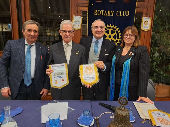 “Il futuro del Rotary è nel continuare a coltivare e valorizzare il meglio dell’uomo, coerente con l’ispirazione di Paula Harris: che abbracci un’etica fondata sul sentimento, sulla percezione dell’altro, sull’amicizia”. Sono le parole del dottor Claudio Widmann, psicologo, psicoanalista junghiano, scrittore, docente presso varie Scuole di Specializzazione, Past President del Club Rotary di Ravenna e del Club Rotary Galla Placida (Ravenna), da lui fondato, già Presidente della Commissione di Formazione del Distretto Rotary 2072, che è stato il protagonista della conviviale rotariana organizzata al “Circolo Canottieri Irno” di Salerno, dal “Rotary Club Salerno Duomo”, presieduto dal dottor Gaetano Cuoco, in interclub con il “Rotary Club Salerno Nord dei Due Principati” presieduto dall’imprenditore Vittorio Villari. Dopo la lettura del ricco curriculum del dottor Widmann, ad opera del Segretario del Club Pacifico Marinato, il Presidente Gaetano Cuoco ha nominato il dottor Widmann socio Onorario del Club. Il dottor Widmann autore del libro:” Il Rotary Ideale. Un secolo di idee, concetti valori e cultura”, ha spiegato che nella ruota del Rotary è già scritto che il Rotary è movimento: “Che il Rotary è fatalmente in trasformazione. Possono cambiare le forme, ma ogni ruota gira sempre intorno ad un punto fermo, il mozzo: il punto fermo del Rotary sono i valori fondamentali enunciati da Paul Harris, che centoventuno anni fa fondò il Rotary: in primo luogo la coltivazione dell’uomo migliore che Paul Harris chiamava “i migliori elementi”; coloro che sanno realizzare aspetti di eccellenza dello specifico umano. il Rotary è un’associazione di figure – leader nel proprio settore professionale che coniugano eccellenza professionale e integrità morale”. Il dottor Claudio Widmann, che è stato invitato a Salerno dall’avvocato Carmine Napoli, socio del Club, ha raccontato il contesto storico e culturale in cui è nato il Rotary:” Nel 1905 a Chicago. Le matrici culturali del Rotary affondano nella prima grande corrente filosofica americana: il pragmatismo, che nasce dalla filosofia della trasformazione. Lo spirito originario del Rotary è quello di anticipare i tempi e di trasformarsi costantemente. Paul Harris diceva che” Il Rotary è ed è sempre stato un po’ in anticipo sulle tendenze del tempo”. Il dottor Widmann ha poi parlato del Rotary attuale:” Il mondo sta cambiando velocemente e anche nel Rotary molte cose stanno cambiando: negli ultimi anni abbiamo familiarizzato con le tecnologie digitali e il Rotary del futuro sarà un Rotary sempre più dematerializzato, sempre più online, un Rotary sempre più globalizzato. Anche il concetto di amicizia, che ha una componente emotiva, è cambiato: ci sono gli amici di rete, molti dei quali non abbiamo mai incontrato, ma che sono delle presenze reali nella nostra vita”. Il dottor Widmann ha ricordato che la nostra società è caratterizzata dalla velocità:” Una delle sfide del Rotary è di assecondare la velocità, di adattarsi alla trasformazione. La grandezza del Rotary sta proprio nel suo futuro, non nel suo passato: il Rotary migliore è il Rotary che sarà”. A portare i saluti del Governatore del “Distretto Rotary 2101” Angelo di Rienzo, è stata l’Assistente del Governatore Maria Luisa De Leo. Presenti alcuni soci e il Presidente del “Rotary Club Tuscianum 1929”, il dottor Cesare Pandolfi.
