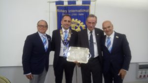 “ Fare per essere d’ispirazione”. E’ il motto scelto dal nuovo Presidente del Club Rotary Salerno Picentia, il dottore commercialista salernitano Roberto Napoli che, emozionato, ha ricevuto il collare, con tutti i nomi dei Presidenti del Club, e lo spillino, dal Presidente uscente, l’ingegner Giuseppe Giannattasio durante la tradizionale cerimonia del Passaggio delle Consegne che si è svolta nella grande sala dell’Hotel Mediterranea di Salerno. Dopo la lettura della “Preghiera del Rotariano” ad opera della dottoressa Chiara Spinosa Napoli, l’ingegner Giannattasio ha ricordato alcuni dei progetti più importanti realizzati durante l’anno:” Il restauro del “Monumento ai Caduti in Provincia di Salerno nella Grande Guerra”, di Piazza Vittorio Veneto, da tutti chiamata Piazza Ferrovia; il “Premio Carmine Sica”, istituito in memoria del nostro socio fondatore e primo presidente del Club; il progetto “Salerno Città Cardioprotetta” ideato quattro anni fa dal nostro Past President, Walter Iannizzaro, grazie al quale sono stati distribuiti in città ben 23 defibrillatori ad associazioni, enti pubblici e privati; il concerto del Maestro Uto Ughi al Teatro Verdi di Salerno organizzato con gli altri Club Rotary ed Inner Wheel di Salerno per raccogliere fondi a favore delle mense dei poveri salernitane e tanti altri realizzati anche con gli altri Club Rotary della città”. L’ingegnere Giannattasio ha consegnato alla dottoressa Felicia Gargiulo il Premio “Carmine Sica”, edizione 2018, per la sua tesi di laurea magistrale in Scienze Statistiche per la Finanza, particolarmente significativa per i suoi contenuti di Finanza Quantitativa applicata e due Paul Harris, il più alto riconoscimento del Rotary, a due soci del Club :Walter Iannizzaro e Ferdinando Spirito che ha ricordato, a nome di tutti i soci, la Paul Harris assegnata all’ingegnere Giuseppe Giannattasio.