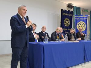 Il Generale Chiapperini ha parlato della comunicazione nelle guerre attuali:” Alcune volte è vera, ma alcune volte nasconde delle menzogne. Come ad esempio la notizia secondo la quale la NATO è andata in Afghanistan per il petrolio, oppure quella riferita alla guerra tra israeliani e palestinesi secondo la quale, l’11 novembre, l’esercito israeliano avrebbe deliberatamente bombardato il più grande ospedale della Striscia di Gaza provocando la morte di 500 civili di cui 100 bambini: in realtà è stato appurato che era stato lanciato un razzo dalle truppe di Hamas che, per errore, era caduto nel parcheggio dell’ospedale provocando alcuni morti. Queste notizie false provocano il dissenso dell’opinione pubblica che scende in strada a manifestare, in questo caso contro Israele. Sarebbe stato più coretto che i giornali avessero scritto che secondo Hamas erano stati gli israeliani a bombardare, non limitandosi a rilanciare la notizia diffusa da Hamas come se fosse vera, senza verificare le fonti”. Chiapperini ha parlato anche delle notizie false diffuse nel conflitto tra Ucraina e Russia:” È stato detto che l’intervento militare russo in Donbass è analogo a quello della NATO in Kosovo mentre ciò non è assolutamente vero, anche perché in Kosovo c’è stata una risoluzione delle Nazioni Unite che autorizzava la NATO a difendere la popolazione civile. Gli ucraini hanno legittimamente difeso la propria nazione in quanto attaccati ingiustamente, contro ogni diritto internazionale, dai russi a causa di Putin che ha innescato una guerra che sta provocando centinaia di migliaia di morti”. Il Generale Chiapperini ha parlato anche del possibile utilizzo nelle guerre dell’Intelligenza Artificiale:” Può essere un’opportunità in quanto rende più efficaci le comunicazioni e anche l’uso delle armi. Bisogna però stare attenti a non farsela sfuggire di mano, altrimenti potrebbe provocare dei danni: bisogna stabilire dei canali nei quali utilizzare l’Intelligenza Artificiale, ben delimitati dall’uomo che non può essere sostituito completamente”. Il Generale ha anche ricordato il momento più bello, ma anche il più triste, vissuto nei tanti territori di guerra dove i militari italiani sono ben visti dalla popolazione locale:” In occasione di un incontro con dei rappresentati di una comunità locale nel nord dell’Afghanistan delle donne, messe in disparte, ci fissarono negli occhi e senza farsi sentire dagli altri ci dissero “Non andate via! Non ci abbandonate! Tornate presto!”. Noi purtroppo siamo andati via: dopo che, in quindici anni di permanenza in Afghanistan, sono morti 53 dei miei soldati, che non sono morti invano perché hanno salvato migliaia di civili afghani che però sono tornati indietro di venti anni perché sono tornati al potere i talebani”. Sono intervenuti il Governatore del “Distretto Rotary 2101”, il dottor Ugo Oliviero, che ha sottolineato l’importanza dell’azione umanitaria.” Contraddistingue anche l’azione rotariana: delle sette aree di servizio del Rotary International, la prima è dedicata alla Pace”. Il Governatore ha anche annunciato che il 23 marzo a Pompei sarà organizzato, dal “Distretto Rotary 2101” un importante convegno sulla Pace. Sono intervenuti anche il Formatore Distrettuale Michelangelo Riemma e l’Assistente del Governatore Tony Ardito.