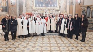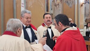 Il geometra Oliva, consulente tecnico legale, da anni collabora alle iniziative del Banco Alimentare e a quelle della Caritas di Eboli:” Partecipo alla preparazione e alla distribuzione dei pacchi alimentari e, con il Gruppo Caritas di Eboli, contribuisco ad assistere le famiglie in difficoltà in quelle che sono le esigenze primarie. Ho sempre cercato di dare, con entusiasmo e spontaneità, il mio aiuto al prossimo, alle persone che avevano bisogno di essere sostenute, anche solo con una parola di conforto. Insieme ai Cavalieri e alle Dame dell’Ordine di San Giorgio in Carinzia vorrei ampliare la mia attività di sostegno rivolta a tutte quelle persone che hanno bisogno di aiuto che in questo momento sono sempre di più e che vivono una nuova povertà a causa della crisi economica”. L’Associazione dei “Cavalieri di San Giorgio in Carinzia”, che conta oltre cinquanta soci, persegue scopi religiosi ed umanitari, come ha spiegato il Presidente, il Grande Ufficiale, avvocato Antonio Spiezia: “Cerchiamo di mantenere alta la fiamma dei valori cristiani, spirituali, e di esplicare opere di assistenza agli ammalati e agli indigenti. Facciamo opere umanitarie e donazioni. Sosteniamo anche il restauro di opere d’arte del nostro territorio. Cerchiamo di renderci utili alla società, aiutando soprattutto i bisognosi”. A benedire il nuovo socio è stato Don Roberto Piemonte, Rettore della Chiesa di San Giorgio, che ha officiato la Santa Messa coadiuvato dall’avvocato Luigi Noschese, membro dell’Associazione e diacono. Don Roberto Piemonte, ha ricordato che il Santo Natale è un periodo centrale dell’anno liturgico:” Celebriamo la nascita della carne del figlio di Dio. Gesù diventa uomo e si dona totalmente a noi. Il cavalierato, legato alla devozione di San Giorgio, è una modalità attraverso la quale ogni cristiano si incarna e cerca di portare il suo contributo di preghiera, di amore e di Carità “. Presenti alla cerimonia i rappresentanti della Confederazione Internazionale dei Poveri Cavalieri di Cristo di San Bernardo di Chiaravalle con il Vicario Generale Massimo Maria Civale e con il Cavaliere Carlo Coppola del priorato di Salerno. La cerimonia è stata impreziosita dalla musica dell’organo della chiesa suonato dal Maestro Angelo De Angelis e dalla stupenda voce del soprano Adele Spagnuolo, anch’ella socia dell’Ordine, che ha interpretato alcuni brani di Monsignor Marco Frisina e melodie della tradizione natalizia.