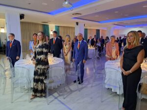Il Governatore ha spiegato il messaggio del Presidente Internazionale, che nell’assemblea di Orlando ha parlato soprattutto di pace:” Non riferita soltanto al conflitto russo-ucraino, ma ai tanti focolai di guerra nel mondo perché i rotariani devono combattere per la pace in tutte le aree geografiche del mondo”. Oliviero ha ricordato le linee guida che orienteranno il percorso dei Club del Distretto:” La sanità, la diversità, equità ed inclusione (DEI); la sostenibilità ambientale e i progetti per le comunità”. Il Governatore Oliviero ha spiegato che un aspetto su cui ha posto l’attenzione il Presidente McInally è stato quello della salute mentale:” Ha sottolineato l’importanza di avere il coraggio di parlarne, soprattutto quando in famiglia vi sono casi di persone care che vivono questa problematica. In questo senso, ho pensato di avviare, insieme ad altre associazioni di servizio, un osservatorio nazionale sulla salute mentale e di creare una commissione che si interessi della salute mentale, riferita soprattutto alla salute emotiva e comportamentale: di verificare l’incidenza e la prevalenza del disagio psichico anche attraverso la diffusione nelle scuole di questionari”. Il Governatore ha ricordato che il Presidente Internazionale del Rotary Gordon McInally verrà a Napoli il 18 settembre:” Incontrerà tutti i soci all’Hotel Royal Continental di Napoli” e spiegato che nell’ambito sanitario metterà in campo dei progetti come: “Cuore Sicuro”, che si riferisce alla condivisone dei rudimenti della rianimazione cardiopolmonare, anche con i defibrillatori e il progetto “Un futuro nel cuore” che prevede una serie di screening nella popolazione scolastica per quanto riguarda la diagnosi di cardiopatie congenite. Alla serata sono intervenuti: la presidente del “Rotaract Club Salerno Est”, Carmen Tisci con alcuni soci del Club; il Governatore Incoming Antonio Brando; il Co-Segretario Distrettuale Giuseppe Ascione, i Formatori Distrettuali Andrea Di Lieto, e Gaetano Pastore e i Past Governor Gennaro Esposito e Marcello Fasano.