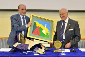 Il Senatore De Masi ha spiegato che all’eventuale riproposizione del circuito automobilistico, parteciperanno solo auto che non sviluppino grandi velocità:” Ci rivolgeremo a vetture da corsa storiche, con più di trent’anni di vita. Organizzeremo anche dei convegni per far conoscere, soprattutto ai giovani, quanta tradizione, cultura e ingegno c’ è nell’Italian Stile che ci ha resi famosi in tutto il mondo”. De Masi ha anche ricordato i salernitani che diedero un loro fondamentale contributo alla manifestazione che richiamava oltre trentamila spettatori, seduti pericolosamente finanche sulle balle di paglia che delimitavano il percorso:” Come non ricordare i prestigiosi cronometristi: l’ingegnere Capone, il dottore Russo, il ragioniere Marra. E’ stato un periodo importante per la storia dell’Automobile Club Salerno che, grazie a questo evento, è decollata a livello nazionale perché il Circuito di Salerno, al di la del fatto sportivo, ha rappresentato un momento di svolta per la nostra città: il popolo che si avvicinava all’automobile”. Il Presidente Todaro ha donato all’ingegnere De Masi una prestigiosa opera pittorica del Maestro Bartolomeo Gatto. (FOTO DI ANTONELLO VENDITTI).