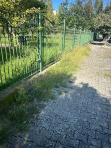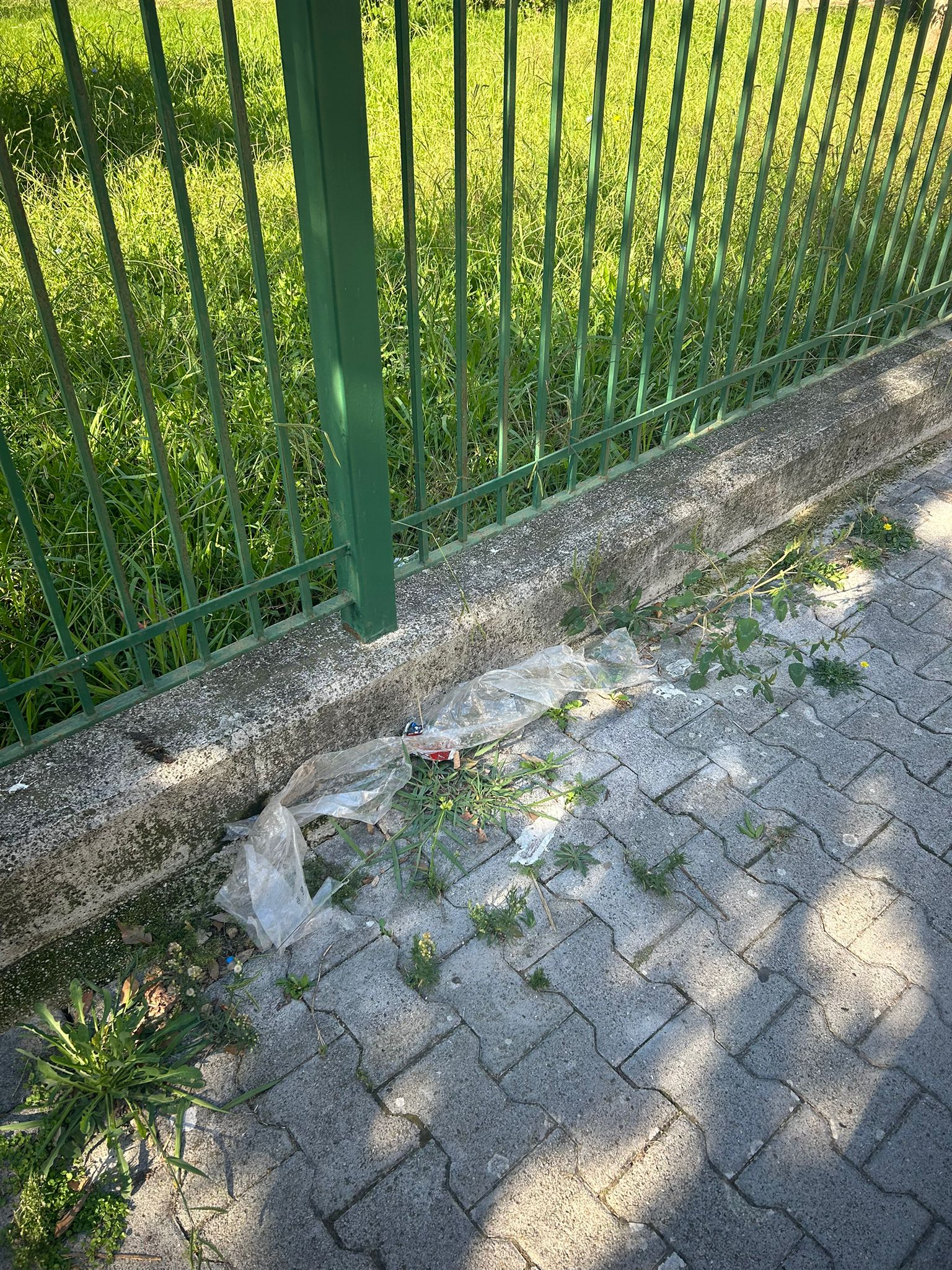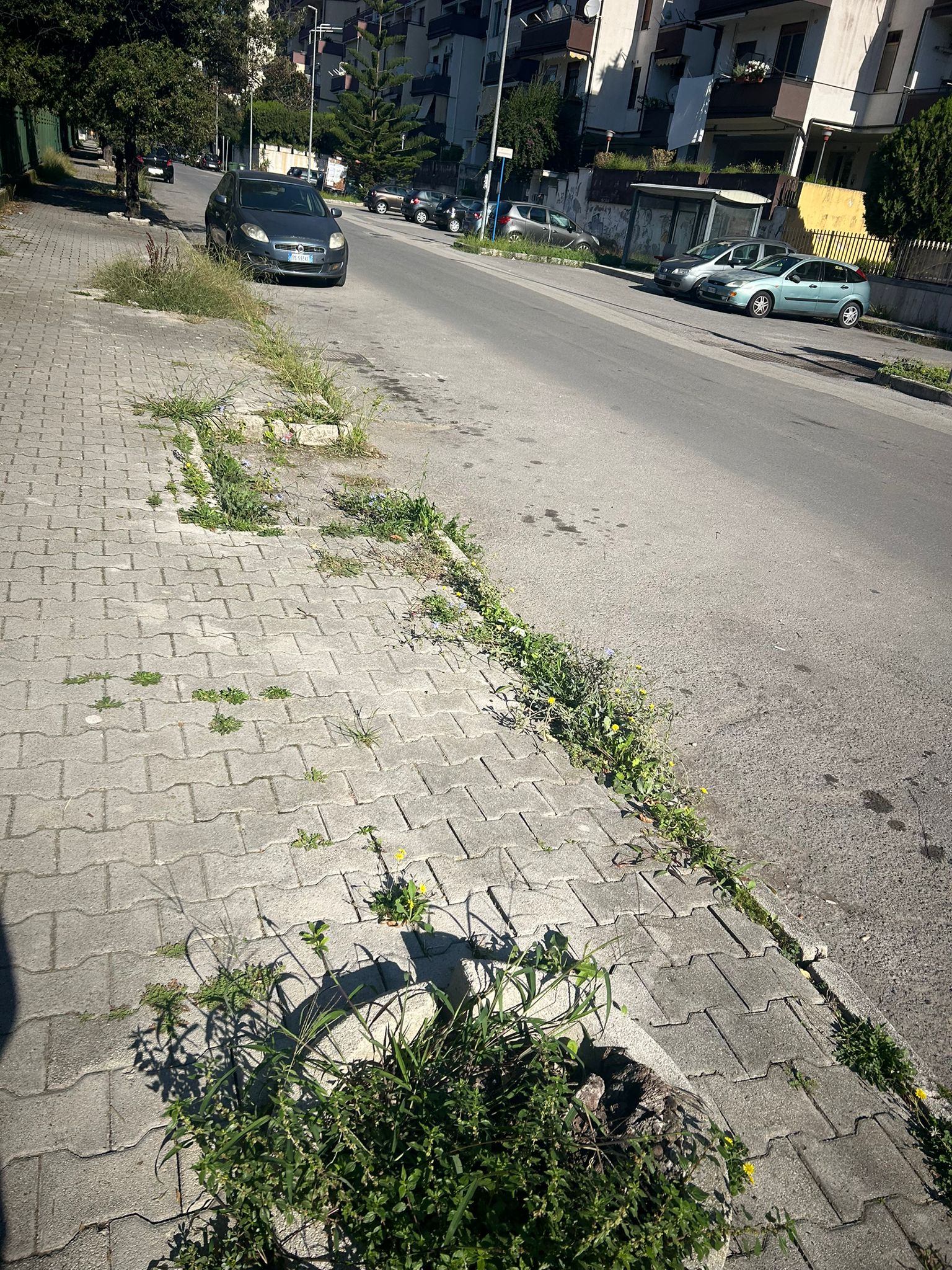 Le condizioni all’interno sono inaccettabili: erba alta ovunque, perdite d’acqua che scendono lungo la strada, sporcizia diffusa e totale incuria.