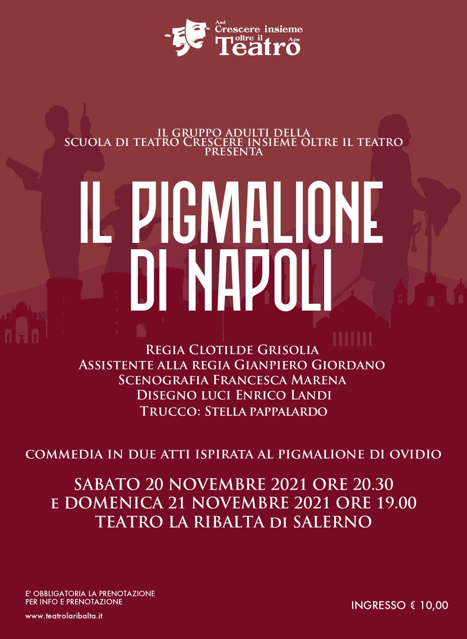 Un nuovo fine settimana si avvicina e si accendono anche le luci sul palco del teatro La Ribalta di Salerno. Il 20 e il 21 Novembre ritorna la rassegna I DIVERSI VOLTI DEL TEATRO e lo fa ospitando la Compagnia teatrale Crescere Insieme oltre il Teatro con lo spettacolo Il Pigmalione di Napoli.