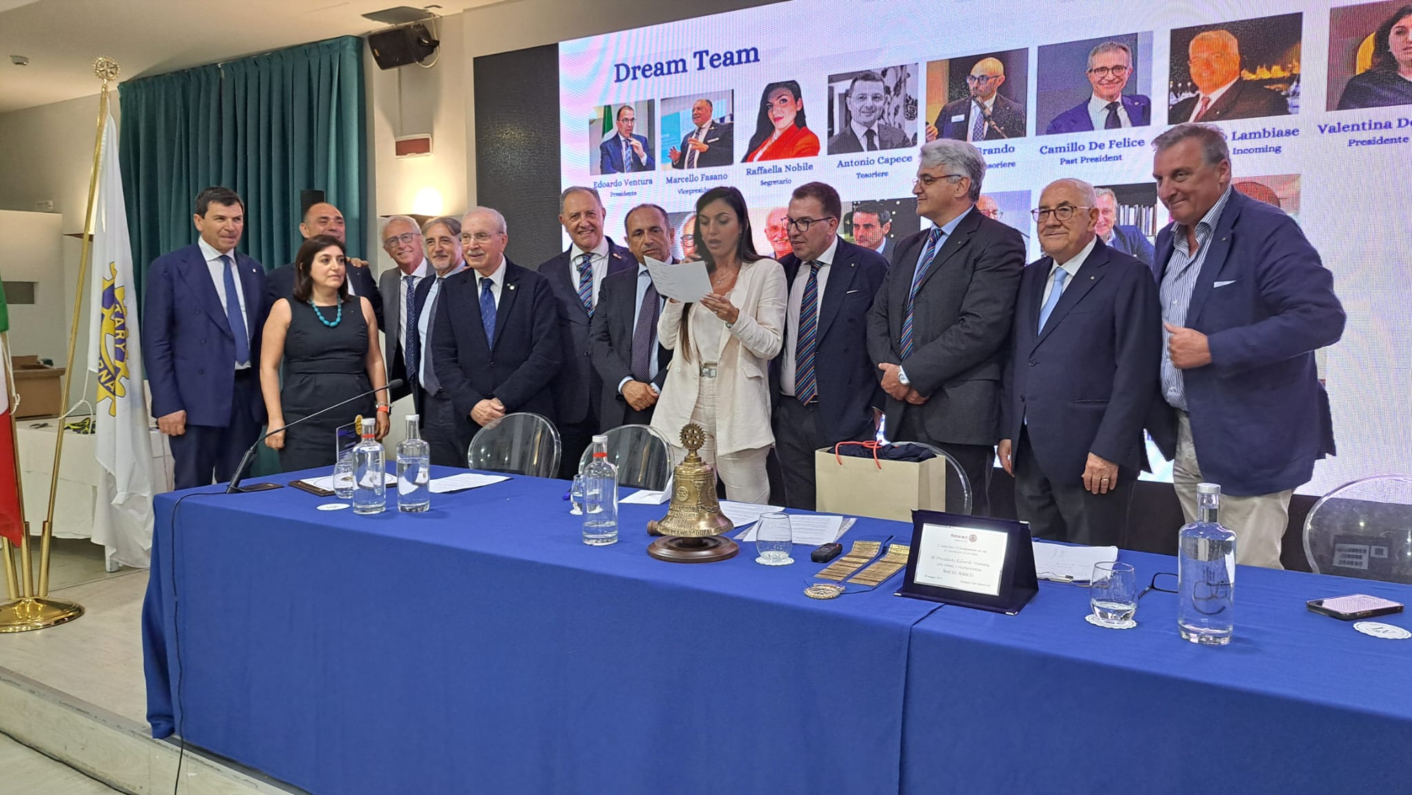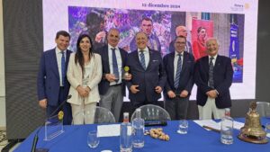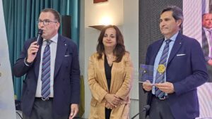 “Più che “President Day” vorrei definirlo “Rotary Day” perché penso che il successo di un anno rotariano non sia da attribuire solo al presidente, ma a tutti soci del Club: io sono per la sacralità e la sovranità del Club che viene prima di ogni socio. Quindi questa è la festa di tutti noi”. Con questo messaggio del Presidente del “Rotary Club Salerno Est” Edoardo Ventura, è iniziata la serata organizzata, all’Hotel Mediterranea di Salerno, dal Presidente e dai soci del Consiglio Direttivo del Club, per ricordare i tanti eventi e i tanti progetti organizzati e realizzati durante l’anno di presidenza del dottor Edoardo Ventura, prima della Cerimonia del “Passaggio di Consegne” in occasione della quale il dottor Ventura consegnerà il collare al nuovo presidente: il professor Ermanno Lambiase. Il Presidente Ventura ha ricordato il motto scelto per il suo anno: “Prendete in mano la vostra vita e fatene un capolavoro” e i tanti i momenti emozionanti vissuti insieme a tutti i soci. “A cominciare dallo scambio del collare con il Past President Camillo de Felice, che è prima di tutto un grande amico che stimo e voglio bene, così come ne voglio al prossimo Presidente, l’amico Ermanno Lambiase”. Tanti i progetti realizzati che sono stati ricordati:” Quello della “Raccolta Alimentare” per la Caritas Parrocchiale del “Cuore Immacolato di Maria”. Grazie ai tanti soci che hanno donato parte del loro prezioso tempo per la raccolta, abbiamo donato in totale 3,4 tonnellate di derrate alimentari alle famiglie bisognose della nostra città. Insieme agli altri Club Rotary salernitani abbiamo donato un gommone di circa sei metri al “Circolo Canottieri Irno” di Salerno, nell’ambito del Progetto Diversità Equità e Inclusione (D.E.I.). Sempre insieme agli altri Club Rotary salernitani abbiamo ideato e curato il progetto che ha consentito di realizzare agli studenti del “Liceo Artistico Sabatini – Menna”, diretto dalla Dirigente Scolastica Renata Florimonte, dei bellissimi busti di ceramica smaltata, con inserti in oro che saranno donati alla “Fondazione Scuola Medica Salernitana”, presieduta dal dottor Ermanno Guerra, e saranno allocati presso il “Museo Virtuale della Scuola Medica Salernitana” e il “Museo Papi”, mentre il busto della medichessa Trotula De Ruggiero, insieme al tondo con l’immagine in bassorilievo di Matteo Silvatico, è stato già installato presso la sede del “Giardino della Minerva “ che riaprirà a breve”. Ventura ha ricordato anche il progetto “Le Domeniche della Salute” realizzato insieme al “Rotary Club Salerno Duomo”, presieduto da Eduardo Grimaldi, al quale il Presidente Ventura ha donato una targa in segno di stima, con la collaborazione dei Club Rotaract Duomo ed Est, presieduti da Francesco Della Valle e Aldo Addesso e con il patrocinio del Comune di Salerno, nella persona del Sindaco Vincenzo Napoli e dell’Assessore alle Politiche Sociali e Giovanili, Paola De Roberto, che ugualmente ha ricevuto una targa per la sua costante presenza durante le giornate dell’iniziativa grazie alla quale sono state visitate oltre trecento persone meno abbienti della città, sia nella Parrocchia di San Demetrio, in Via Dalmazia, affidata a Don Rosario Petrone, sia nella “Parrocchia Cuore Immacolata di Maria” in Via Madonna di Fatima, affidata a Monsignor Antonio Montefusco: visite effettuate grazie ai medici soci dei Club rotariani e non che hanno offerto gratuitamente degli screening sanitari per varie patologie alle persone disagiate della città: Natalino Barbato, Fabiana Errico, Antonio Brando, Vincenzo Capuano, Giuseppe Cimmino, Vincenzo Pignataro, Mario Infante, Giovanni Valeriani, Licia Valeriani, Marcello Orio, Cristina Massaro, Rossella Cirillo, Giuseppe Palladino, Rosa Napoletano, Antonio Sannino”. Ventura ha anche ricordato i tanti incontri formativi e culturali organizzati per approfondire varie tematiche con importanti personalità, come il dottor Alessandro Profumo banchiere, dirigente d’azienda, Cavaliere del Lavoro, già presidente del Monte dei Paschi di Siena e Amministratore Delegato del gruppo UniCredit e Leonardo, che ha raccontato come, lavorando intensamente, sia diventato un uomo di successo; il Principe Lorenzo Borghese, Cavaliere di Gran Croce d’Onore e Devozione, presidente dell’Associazione dei Cavalieri Italiani del Sovrano Ordine di Malta che, insieme al dottor Gualtiero Ventura, Cavaliere di Grazia e Devozione, Segretario Generale dell’Associazione dei Cavalieri Italiani del Sovrano Militare Ordine di Malta, ha raccontato che oggi l’Ordine di Malta, con i suoi 13500 Cavalieri e Dame, opera in 120 paesi dove fornisce assistenza alle persone bisognose attraverso le sue attività mediche, sociali e umanitarie; il Maestro Ciro Caravano, fondatore e voce storica dei “Neri per Caso”, amico d’infanzia del Presidente Ventura, che ha raccontato la sua storia personale e quella dei “Neri Per Caso”. Caravano, insieme ai componenti del “Coro POP” di Salerno che dirige, si è esibito in occasione della “Festa degli Auguri” del Club. Un altro ospite importante del Club è stato lo scrittore Diego De Silva che ha parlato del suo famoso personaggio: l’avvocato d’insuccesso Vincenzo Malinconico interpretato nella fiction ambientata a Salerno dall’attore Massimiliano Gallo; illuminante l’incontro con l’ingegnere Andrea Prete, Presidente di “Unioncamere” e della “Camera di Commercio” di Salerno e l’Onorevole Piero De Luca. Tante le realtà eccellenti del territorio campano e nazionale che sono state raccontate direttamente dai rappresentanti di alcune aziende come la “Chantecler”, che da ottant’uno anni, con la sua famosa e iconica campanella è divenuta simbolo di Capri nel mondo: un capolavoro di arte orafa la cui storia è stata raccontata dalla dottoressa Teresa Quisler Aprea e dal giovanissimo nipote, il dottor Leonardo Logarin,