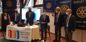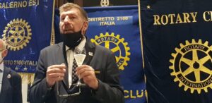 “Il Rotary crea opportunità” è il nuovo motto del “Rotary International” che è stato ricordato dal Governatore del “Distretto Rotary 2100”, che comprende i territori della Campania, della Calabria e il territorio di Lauria, il professor Massimo Franco, che, accompagnato dalla consorte, la professoressa Antonella Musto, ha incontrato, nel rispetto delle normative anti Covid – 19, i Presidenti e i Segretari dei Club Rotary dell’area salernitana, presso il Circolo Canottieri Irno di Salerno, presieduto dal dottor Giovanni Ricco che ha portato i saluti di tutti i soci dello storico Circolo, fondato 110 anni fa, e lodato le iniziative messe in campo dal Rotary. Il Governatore ha consegnato ai Presidenti dei Club i simboli del Rotary: la nuova cravatta agli uomini e il foulard alle donne ed anche il gagliardetto e il distintivo con il nuovo logo :” Tre porte aperte sul territorio che con i loro colori rappresentano le anime del Rotary: quella amaranto rappresenta il Rotaract, quella gialla il Rotary e quella blu l’Interact”. Il professor Franco ha ricordato il grande impegno profuso da tutti i soci rotariani durante il periodo di emergenza Covid – 19:” Siamo stati presenti sui nostri territori anche in un momento difficile come quello che stiamo vivendo: attenti alle esigenze delle comunità, il Rotary ha reagito in modo straordinario alla situazione emergenziale con una grande capacità di adattamento”.