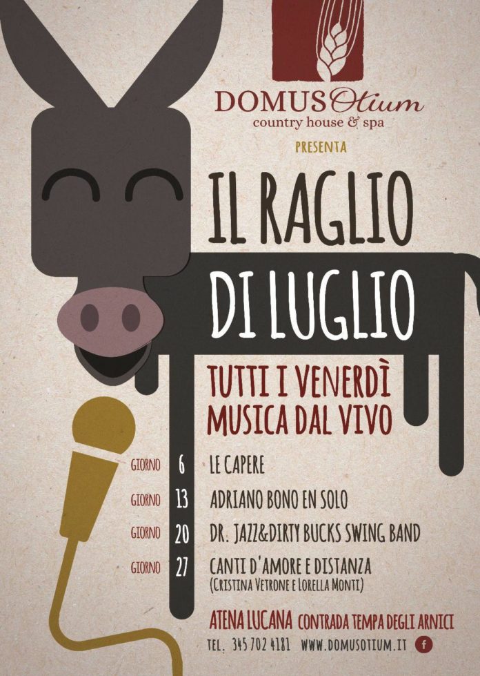 Nella cornice naturale dei monti della Maddalena di Atena Lucana (SA) la Country House & Spa “Domus Otium” presenta la rassegna musicale “Il raglio di luglio”: quattro appuntamenti, tutti i venerdì alle ore 22:00, dal 6 al 27 luglio.