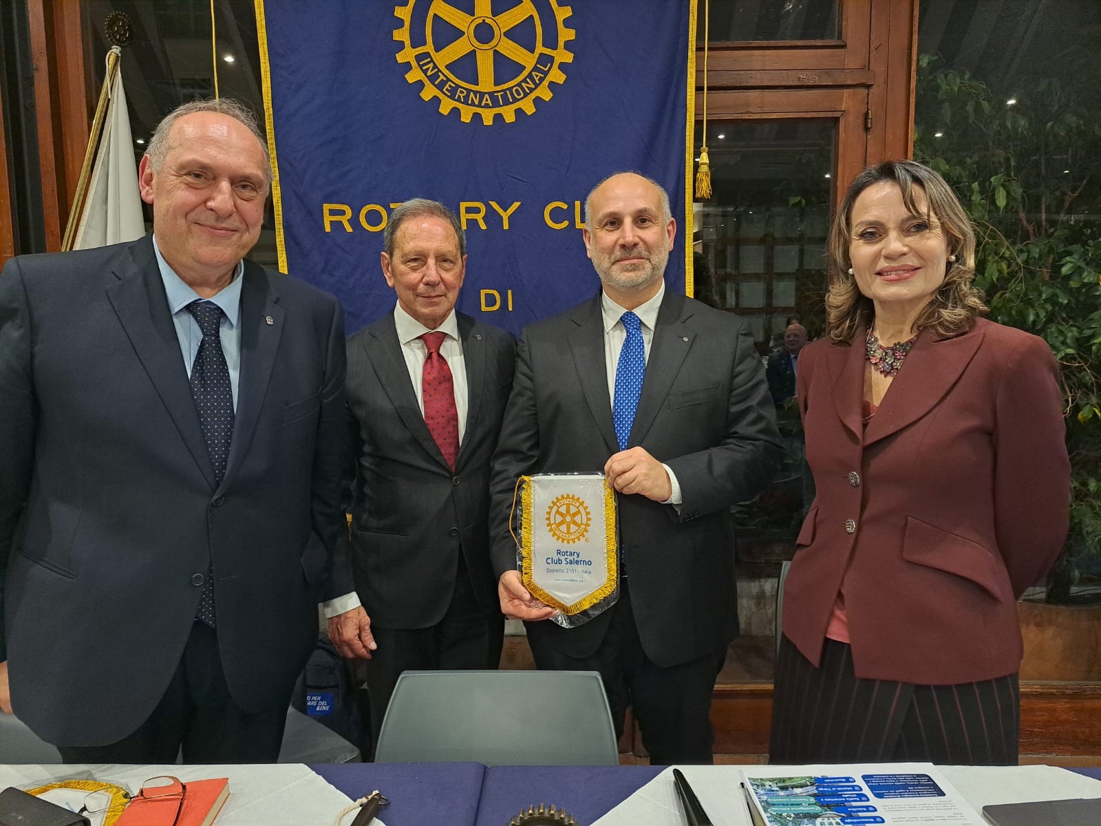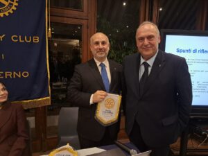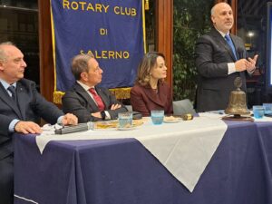 “L’Università di Salerno ambisce ad essere un’università moderna, dinamica, giovane, che sappia dialogare con le imprese e che sappia accompagnare i propri studenti nel mondo del lavoro: a diventare imprenditori di sé stessi; consentendo loro di guardare alle nuove tecnologie di avanguardia e di attendere il futuro con fiducia”. È questo l’auspicio per l’Università di Salerno del Magnifico Rettore, il Professor Virgilio D’Antonio, che è stato nominato Socio Onorario del “Rotary Club Salerno”, presieduto dal dottor Francesco Caggiano, nel corso della conviviale rotariana organizzata al “Circolo Canottieri Irno” di Salerno. A spillare il Rettore è stato il professor Cosimo Risi, Past President del Club, che ha introdotto la relazione del Magnifico Rettore sul tema: “Il Polo del Sapere al Centro dello Sviluppo”. L’incontro si inserisce in un ampio percorso che il “Rotary Club Salerno” sta sviluppando quest’anno, come ha spiegato il Presidente Francesco Caggiano:” Stiamo incontrando le principali personalità culturali, civili, religiose e militari della nostra città. Cerchiamo di far emergere le nostre eccellenze in ogni ambito. L’Università degli Studi di Salerno costituisce sicuramente un riferimento fondamentale per lo sviluppo e la crescita culturale, scientifica, tecnologica ed economica del territorio. Un laboratorio di eccellenze umane che si spera un domani possano restituire nel loro territorio le conoscenze che hanno acquisito senza andare via”. Il Rettore, che si è insediato il sette novembre, è un giurista: insegna Diritto Privato Comparato, Diritto Comparato dell’Informazione e della Comunicazione, Diritto delle nuove tecnologie e Ordinamento sportivo e diritto comparato dello sport, presso il Dipartimento di Scienze Politiche e della Comunicazione dell’Università di Salerno. È anche membro del Collegio di Garanzia del CONI. Il Rettore Virgilio D’Antonio ha parlato delle prospettive future dell’Università di Salerno, partendo dal dialogo con il territorio:” L’Università di Salerno, che ha circa quarantamila iscritti, sta attraversando un processo di rinnovamento importante. Siamo la seconda Università della Campania, una delle principali Università del Mezzogiorno e una delle principali realtà di ricerca e di didattica a livello nazionale. Abbiamo diciassette Dipartimenti che sono ai primi posti per la loro attività di ricerca scientifica di eccellenza: a breve installeremo un computer quantistico: uno dei più importanti e potenti d’Europa e del mondo, nell’ambito del progetto “Quantum Valley” che ci consentirà di creare il primo centro italiano di calcolo quantistico. Potrà essere un volano di sviluppo non solo per l’Università di Salerno, ma per tutto il territorio Campano e del Mezzogiorno. Abbiamo dei laureati di eccellenza richiestissimi nel mondo del lavoro: in Italia e all’estero. Siamo un grande ateneo ma possiamo ambire a diventare un Mega Ateneo. La nostra missione è quella di formare le generazioni presenti intravedendo un bagliore di ciò che sarà il futuro”. Il Magnifico Rettore ha confermato che ci sarà una sede dell’Università nell’ex Tribunale di Salerno:” Questo è un progetto che dovrebbe concretizzarsi nel prossimo anno. L’Università è di Salerno e deve rivendicare con vigore il suo rapporto con la città che deve essere biunivoco: l’Università si arricchisce nel rapporto con la città, con il territorio, e Salerno può ambire finalmente a diventare “Città Universitaria” e sentirsi orgogliosa della sua Università. Non vogliamo più essere percepiti come un non luogo, un corpo estraneo della nostra città: vogliamo essere una parte integrante del suo tessuto culturale, umano ed economico”. Presentati dal Prefetto Alessandro Ruggiero i professori universitari e le autorità rotariane ospiti del Club: la professoressa Paola Adinolfi, Ordinario di Organizzazione Aziendale all’Università di Salerno presso il Dipartimento di Scienze Aziendali – Management & Innovation Systems e Presidente della Fondazione dell’Università degli Studi di Salerno; la professoressa Genny Tortora, Decana dei Professori e Professore Ordinario di Informatica;; la professoressa Rosa Fiorillo, Ordinario di Archeologia Cristiana e Medievale presso il Dipartimento di Scienze del Patrimonio Culturale dell’Università di Salerno; il professor Matteo Gaeta, Ordinario dell’Ingegneria dell’Informazione presso l’Università di Salerno; il Presidente del “Rotary Club di Capri”, l’avvocato Stanislao Giammarino; la Presidente del “Rotaract Club Salerno”, la professoressa Roberta Palumbo, ed il Vice Presidente del “Club Interact Salerno” Emanuele Vicinanza. Aniello Palumbo