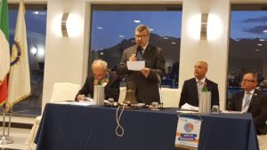 A portare i saluti di tutti i Past President del Club è stato il notaio Guglielmo Barela ( Presidente nel 1991-92) che ha anche ricordato la mission del Rotary:” E’ vicino ai problemi della società contemporanea. Cura l’assistenza ai bisognosi, ai malati, agli anziani, ai giovani, anche di altre nazioni; cura molto la diffusione della cultura e dell’amicizia. I tanti riconoscimenti ricevuti dal nostro Club sono la testimonianza che i nostri sono ideali validi”. Il Governatore del Distretto Rotary 2100, Salvatore Iovieno, ha ricordato il notevole impegno profuso negli anni da tutti i Soci del Club: ” Un Club glorioso e ricco di storia che ha sempre saputo programmare appuntamenti, avvenimenti, occasioni, incontri, progetti, cercando di volare alto, aggrappandosi saldamente all’amicizia, all’entusiasmo, al rigoroso spirito associativo”. Presenti l’Assistente del Governatore, Andrea Di Lieto, il Segretario Distrettuale, Massimo Carosella, e i Past Governor Maria Rita Acciardi e Luciano Lucania.