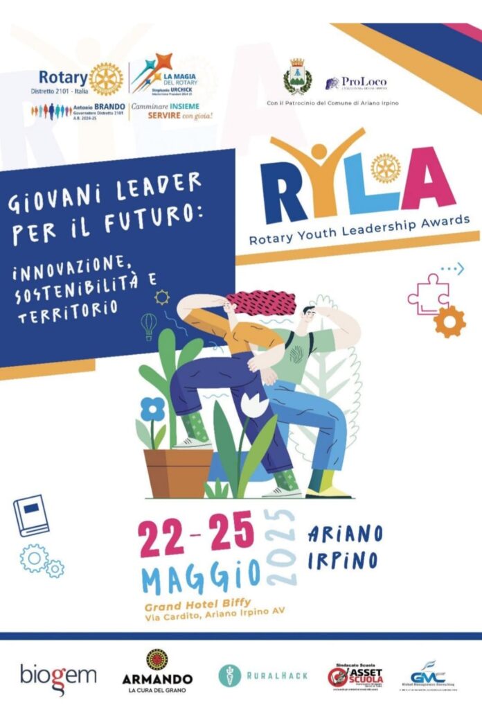 Dal 22 al 25 maggio 2025, Ariano Irpino (AV) sarà teatro del Rotary Youth Leadership Awards (RYLA) promosso dal “Distretto Rotary 2101” presieduto dal Governatore Antonio Brando. Un appuntamento annuale dedicato allo sviluppo del potenziale delle nuove generazioni. Il tema scelto per questa edizione: “Giovani leader per il futuro: innovazione, sostenibilità e territorio”, sottolinea l’urgenza di una leadership capace di affrontare le sfide del nostro tempo con strumenti concreti, visione sistemica e radicamento nei contesti locali. Saranno 32 i giovani selezionati provenienti da tutta la Campania, scelti per il loro impegno e potenziale di cambiamento, che prenderanno parte ad un percorso esperenziale, a quattro giornate immersive fatte di laboratori, attività di co-design, sessioni formative, esperienze sul campo e momenti di confronto. I partecipanti, organizzati in gruppi, lavoreranno in modo collaborativo per ideare e sviluppare progetti concreti legati a temi strategici come: la valorizzazione sostenibile del territorio, l’innovazione nel settore agroalimentare, l’imprenditorialità giovanile e sociale. Il programma mira a sviluppare nei partecipanti competenze di leadership responsabile, con particolare attenzione alla comunicazione, alla gestione dei ruoli e alla capacità di costruire team coesi e inclusivi. L’intero percorso è strutturato come un laboratorio pratico di progettazione partecipata, dove ogni gruppo sarà responsabile della propria proposta: dall’analisi di bisogni reali fino alla presentazione finale. Sarà anche un’occasione per scoprire il territorio infatti le attività si svolgeranno in luoghi simbolici dell’innovazione e dell’eccellenza territoriale, tra cui: il Pastificio De Matteis – Pasta Armando, il Centro di Alta Formazione Biogem e l’Istituto di Ricerche Genetiche Biogem, offrendo ai partecipanti l’opportunità di conoscere buone pratiche e modelli replicabili. La proposta formativa sarà arricchita da incontri con esperti, testimonianze dal mondo accademico, imprenditoriale e sociale, e momenti di riflessione collettiva. Un’occasione per entrare in contatto diretto con chi già opera sul territorio in modo sostenibile e innovativo. “RYLA 2025 non è un evento da seguire passivamente, ma un’esperienza da costruire insieme. È una palestra di cittadinanza attiva, un luogo dove i giovani diventano protagonisti della trasformazione, attraverso il confronto, la creatività e il lavoro di squadra”- ha affermato il Governatore Antonio Brando.