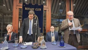 Il professor Guerra ha spiegato che le direttive UE prevedono, entro il 2035, lo stop ai motori termici:” Questo è uno dei motivi per cui si stanno sperimentando nuovi carburanti meno inquinanti. I settori dell’industria e dei trasporti sono i più difficili da decarbonizzare. È quindi necessario avere dei combustibili ottenuti da energia elettrica (idrogeno ed elettro – combustibili) o i Bio – Combustibili”. Guerra ha spiegato che non è facile far reagire la CO2:” Bisogna utilizzare delle sostanze molto reattive come l’idrogeno che però non c’è sulla terra e neanche nell’atmosfera: bisogna produrlo utilizzando l’energia elettrica mediante processi di elettrolisi”. Guerra ha spiegato che mentre in molti paesi d’Europa ci sono già degli impianti operativi di produzione di metanolo da CO2, in Italia su sta seguendo il percorso dell’utilizzo dei Bio – Combustibili:” Almeno per i prossimi venti anni in Italia andremo in questa direzione”. Nel corso della serata sono state presentate dal presidente Eduardo Grimaldi tre nuove socie del Club: Patrizia Console, Vittoria Marino e Daniela Mastantuono. L’Assistente del Governatore Giuseppe Ascione ha portato i saluti del Governatore del “Distretto Rotary 2101”, il dottor Antonio Brando.