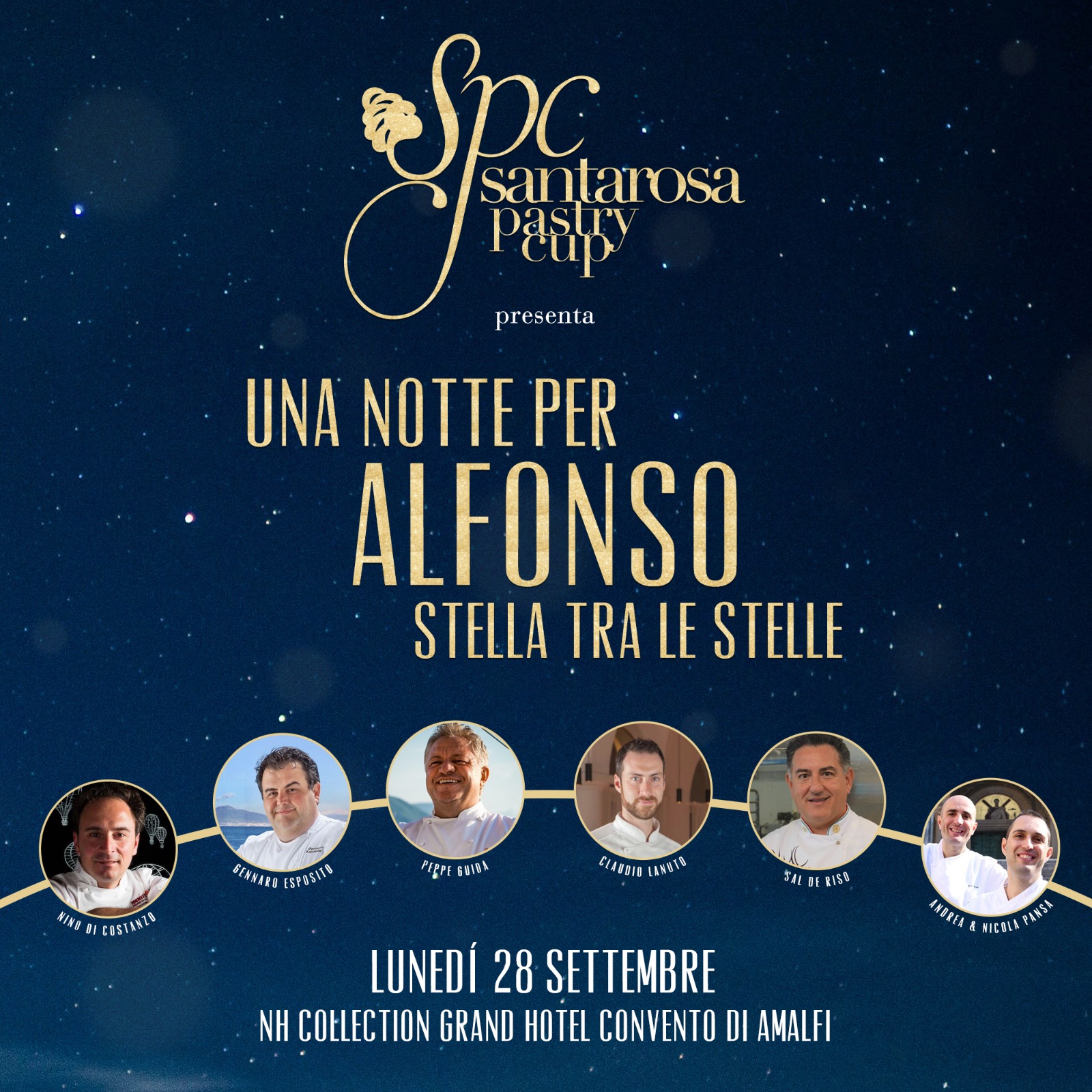In questa cornice di indubbia valenza storica e artistica, arroccata su uno sperone roccioso da cui si domina con un solo colpo d’occhio un panorama suggestivo della costa sottostante, lunedì 28 settembre si terrà “Una Notte per Alfonso…Stella tra le Stelle”: una serata dedicata al compianto Maestro Pepe, pluripremiato pasticcere che ha sempre messo al centro del suo progetto la tradizione e la valorizzazione dei prodotti di eccellenza locale come gli agrumi dei Monti Lattari, il pomodoro “corbarino”, l’albicocca del Vesuvio “Pellecchiella” e il fico bianco del Cilento. In suo onore, inoltre, sarà istituito un premio nelle prossime edizioni del Santarosa Pastry Cup.