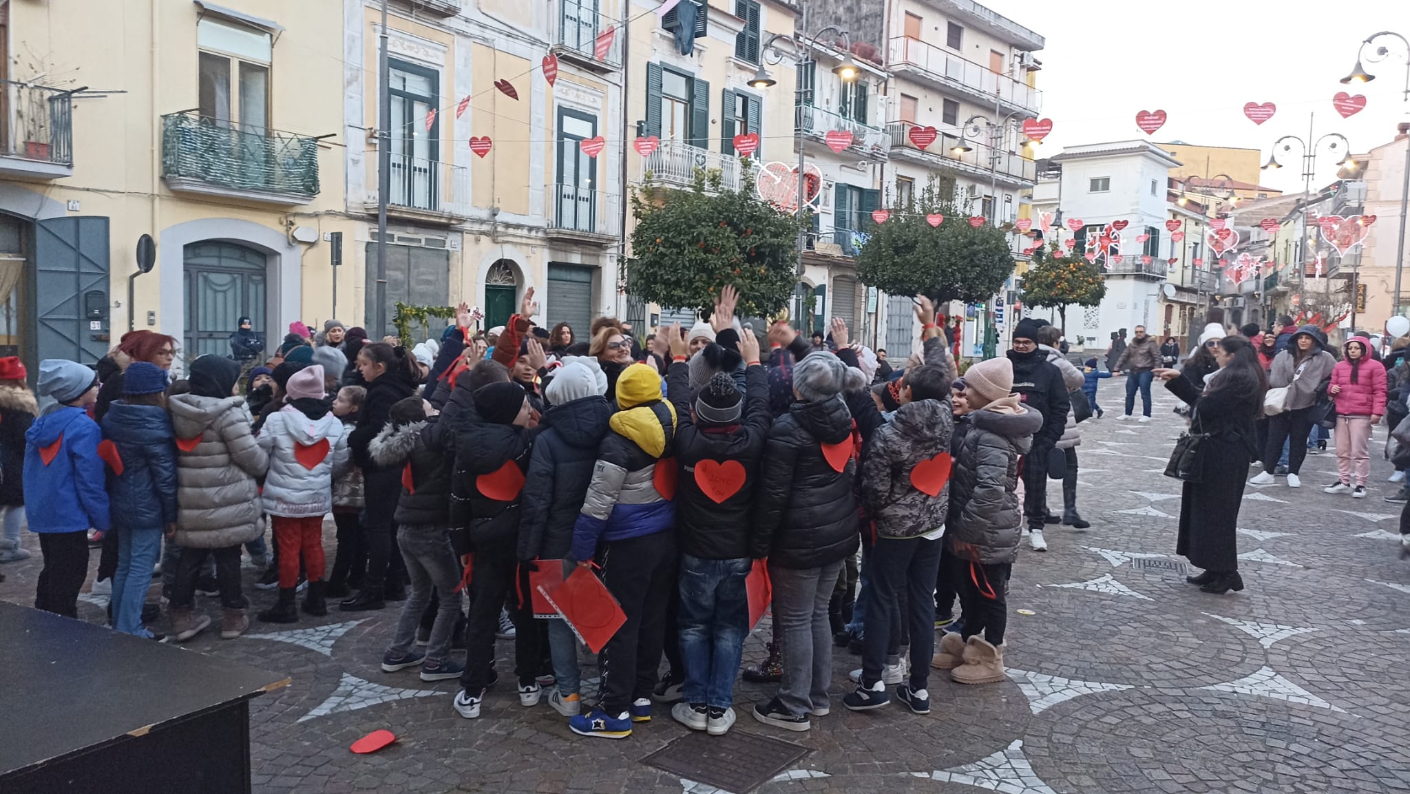 La scuola racconta il valore unico e prezioso dell’amore. Sabato 11 febbraio in piazza Garibaldii bambini delle classi quarte e quinte del Secondo Circolo di Mercato S. Severino hanno presentato un piccolo grande tributo all’amore, in occasione di S. Valentino. Un’occasione per descrivere il senso di questo sentimento unico che deve guidare, accogliere e proteggere, andando contro la violenza, il maltrattamento, il rifiuto. Attraverso racconti e balli gli alunni del Secondo Circolo hanno parlato d’amore, di quello che protegge, di quello che si prende cura e non accetta oltraggi. Tra le forme d’amore quella che si trova nel nucleo più prezioso per ogni persona, la famiglia. Attraverso le musiche di Battiato, di Eman Meta, Silvia Michelin i bambini hanno espresso la visione più bella dell’amore.