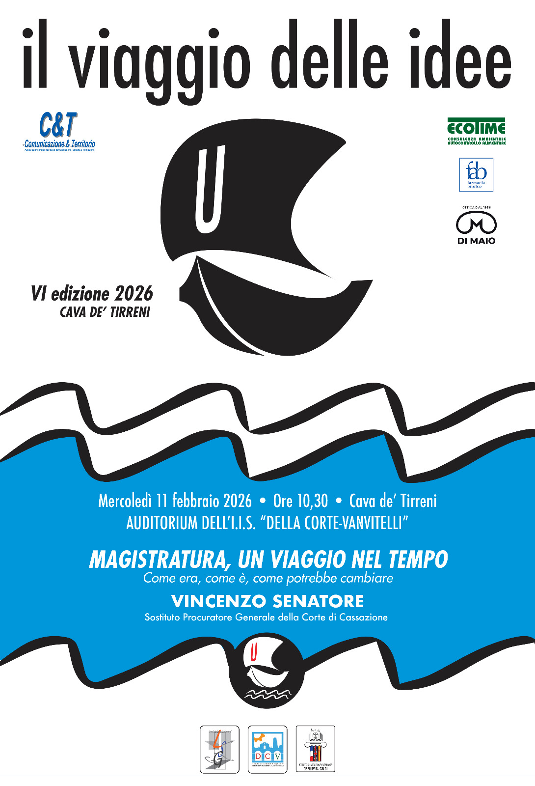 Il quinto appuntamento della sesta edizione de Il Viaggio delle Idee si terrà il prossimo mercoledì 11 febbraio, alle ore 10,30, presso l’Auditorium dell’I.I.S “Della Corte – Vanvitelli”, e vedrà come protagonista il dott. Vincenzo Senatore, Sostituto Procuratore Generale della Corte di Cassazione, sul tema Magistratura, un viaggio nel tempo. Come era, come è, come potrebbe cambiare.