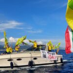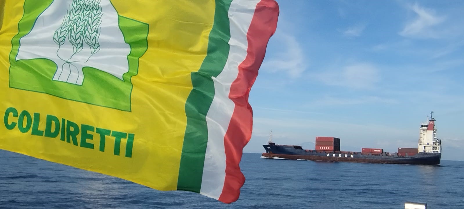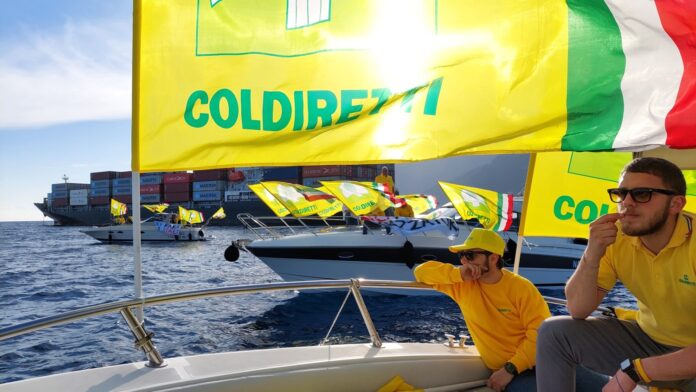 Lo slogan “Senza reciprocità da qui non si passa!” ha accompagnato l’azione degli attivisti che a bordo di numerose imbarcazioni hanno circondato la nave proveniente dall’Africa. “Non vogliamo frutta e verdura coltivata all’estero con regole diverse – hanno ribadito – che poi arriva in Italia e si trasforma magicamente in Made in Italy!”.