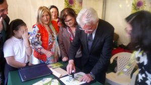 Il Sindaco si è soffermato allo stand dell’Istituto Alberghiero Virtuoso di Salerno, diretto dal dottor Gianfranco Casaburi, dove gli alunni dell’Istituto, guidati dallo chef Clemente Gaeta, docente di enogastronomia, hanno intagliato artisticamente degli ortaggi: zucche, meloni, carote, zucchine e patate, trasformandoli in fiori stupendi. Il Sindaco ha anche ammirato gli scatti unici di fiori e i paesaggi floreali con cornice dipinta a mano da Mariagrazia Voto, artista – fotografa salernitana e le piante coltivate in idrocultura nello stand di Mauro e Massimo Pellecchia. L’architetto Napoli che si è anche fermato allo stand dell’Associazione “Il Germoglio Onlus” di Silvio Mauro, ha anche apposto il timbro filatelico realizzato dalle Poste Italiane dedicato alla Mostra della Minerva su di una cartolina – ricordo della Manifestazione.