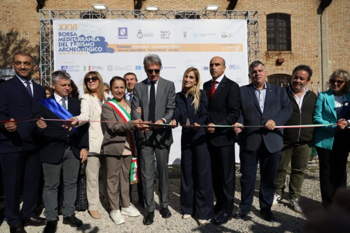 Al taglio del nastro hanno partecipato Felice Casucci Assessore alla Semplificazione Amministrativa e al Turismo della Regione Campania, Tiziana D’Angelo Direttore dei Parchi Archeologici di Paestum e Velia, Barbara Casagrande Segretario Generale del Ministero del Turismo, Maria Antonietta Di Filippo Vice Sindaco e Assessore all’Identità Locale del Comune di Capaccio Paestum, Pasquale Sorrentino Consigliere Provincia di Salerno con delega al Turismo, Vincenzo Cirillo Consigliere Delegato alla Promozione del Territorio della Città Metropolitana di Napoli, Giuseppe Coccorullo Presidente Parco Nazionale del Cilento, Vallo di Diano e Alburni, Ignazio Abrignani Presidente Osservatorio Parlamentare per il Turismo, Francesco Micciché Sindaco di Agrigento, Giuseppe Parello Dirigente Coordinatore Parchi e Siti Unesco Assessorato Regionale dei Beni culturali e dell’identità siciliana e Presidente del Consiglio del Parco Archeologico e Paesaggistico della Valle dei Templi.