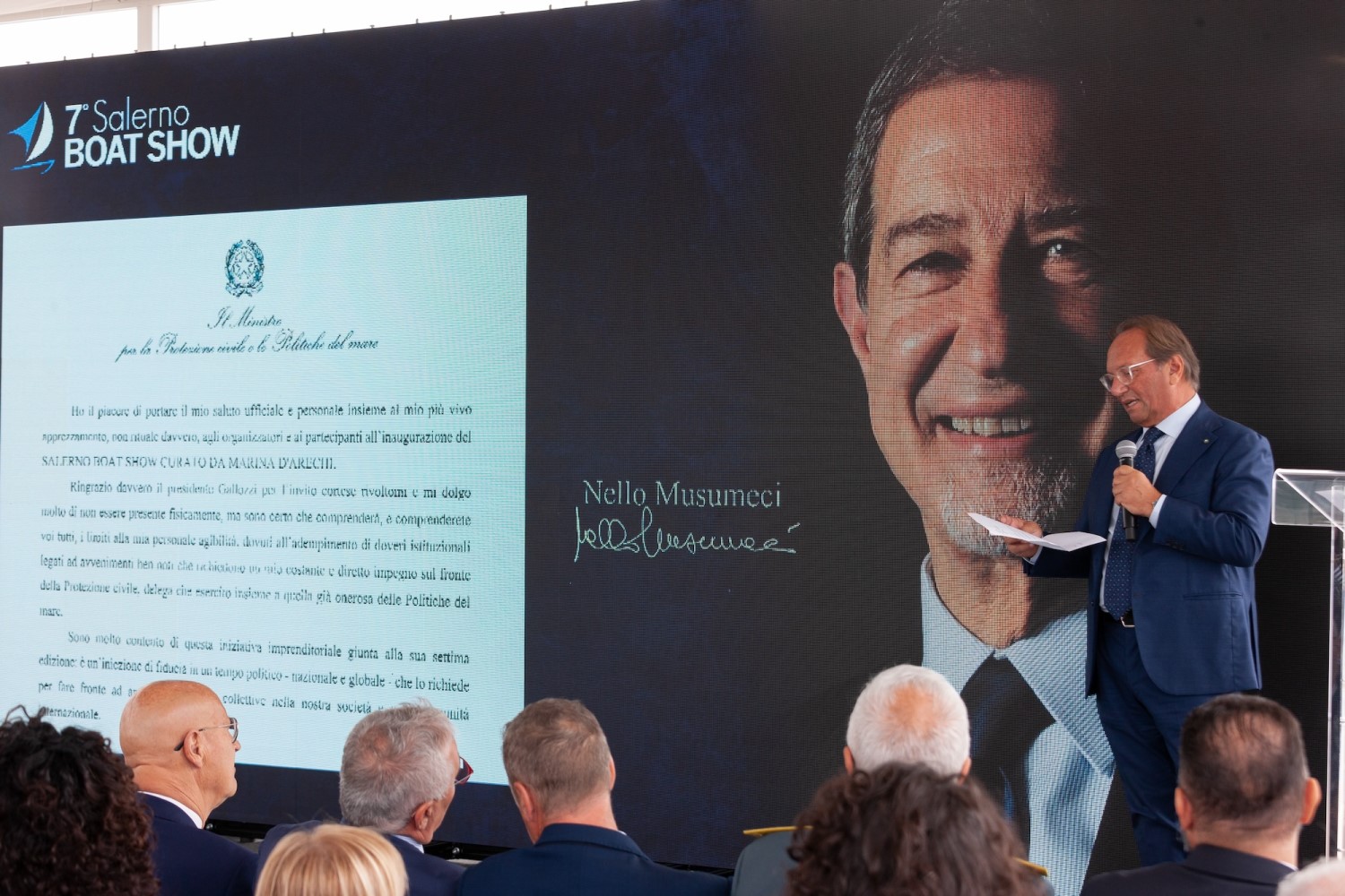 In apertura il presidente Agostino Gallozzi ha letto parte di un messaggio scritto firmato dal Ministro per le Politiche del Mare Nello Musumeci: “Poiché il Salone si tiene in una nobile città del Mezzogiorno, quale è Salerno, ciò che mi preme evidenziare, in questa occasione, è il dato del Mezzogiorno perché l’Economia del Mare riesce laddove altri comparti non ce la fanno: capovolge i “rapporti di forza” tra Nord e Sud; tutti i numeri ci dicono che l’Economia Blu Italiana è trainata soprattutto dal Mezzogiorno, nella stragrande maggioranza dei settori”. “Vi auguro per ciò – conclude il Ministro – “che il vostro evento, intenso e significativo, sia un segnale di vita da replicare. Ne hanno bisogno il Sud e tutta l’Italia; ce n’è tanto bisogno oltre i nostri confini nazionali ed europei”.