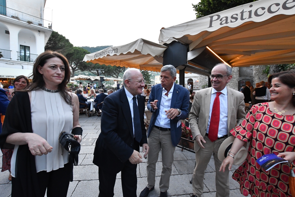 Parterre di eccezione per la prima del Festival organizzato dalla Fondazione Ravello guidata dal Commissario Mauro Felicori, in platea il Governatore Vincenzo De Luca, il Sottosegretario al ministero dei Beni Culturali, Lucia Borgonzoni, consiglieri e funzionari regionali, il Comandante della Legione Carabinieri Campania Maurizio Stefanizzi, oltre che al gradito ritorno del Premio Oscar Tim Robbins e di Eduardo De Crescenzo, molto legato a Ravello.