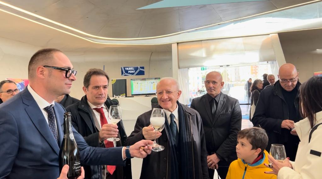 Taglio del nastro a sorpresa con il Governatore della regione Campania Vincenzo De Luca alla stazione marittima “Zaha Hadid” per il Salone di degustazione “Un Mare di Foglie”. Il Presidente della regione Campania è stato accompagnato da Antonio Stanzione, curatore di Guida Bio, e dall’Onorevole Paola de Micheli attraverso i banchi d’assaggio. Un viaggio tra i vini premiati da Guida Bio partendo dalla costiera amalfitana fino ai vini del Trentino e dell’Alto Adige. Il Governatore, durante il percorso di degustazione, si è soffermato con i vari produttori presenti, molti dei quali premiati con la Foglia d’Oro di Guida Bio Selezioni Vini 2024. Molti produttori provenienti dal resto dell’Italia, fan del Governatore della regione Campania, hanno espresso il loro consenso per le politiche innovative sviluppate dalla Campania in ottica della sostenibilità e della qualità, con numerosi produzioni vitivinicole d’eccellenza ed ampi margini di export.