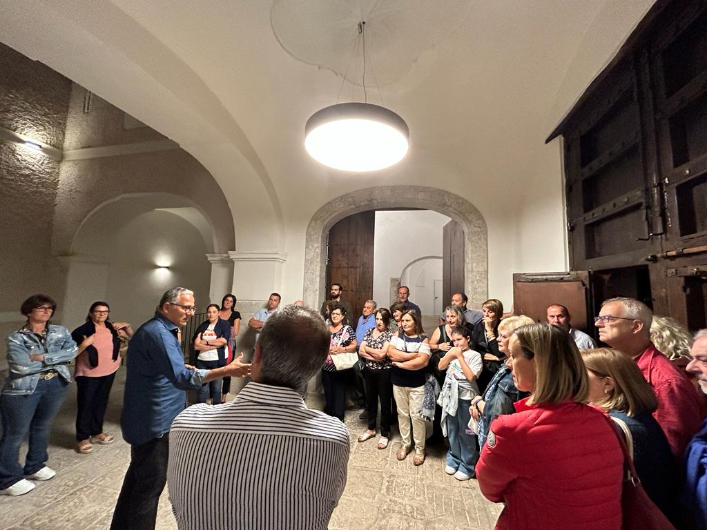 A conclusione della serata, la piacevole visita di 50 tra giovani sindaci e amministratori provenienti da tutta Italia che hanno potuto vedere da vicino il risultato di un progetto iniziato da oltre 10 anni, visitando prima il Borgo, per un brindisi, e successivamente visitando Palazzo Borriello.